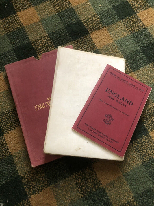 FOLDING MAP of ENGLAND and WALES in SLIPCASE Canvas-Backed WITH BOOKLET c1930s