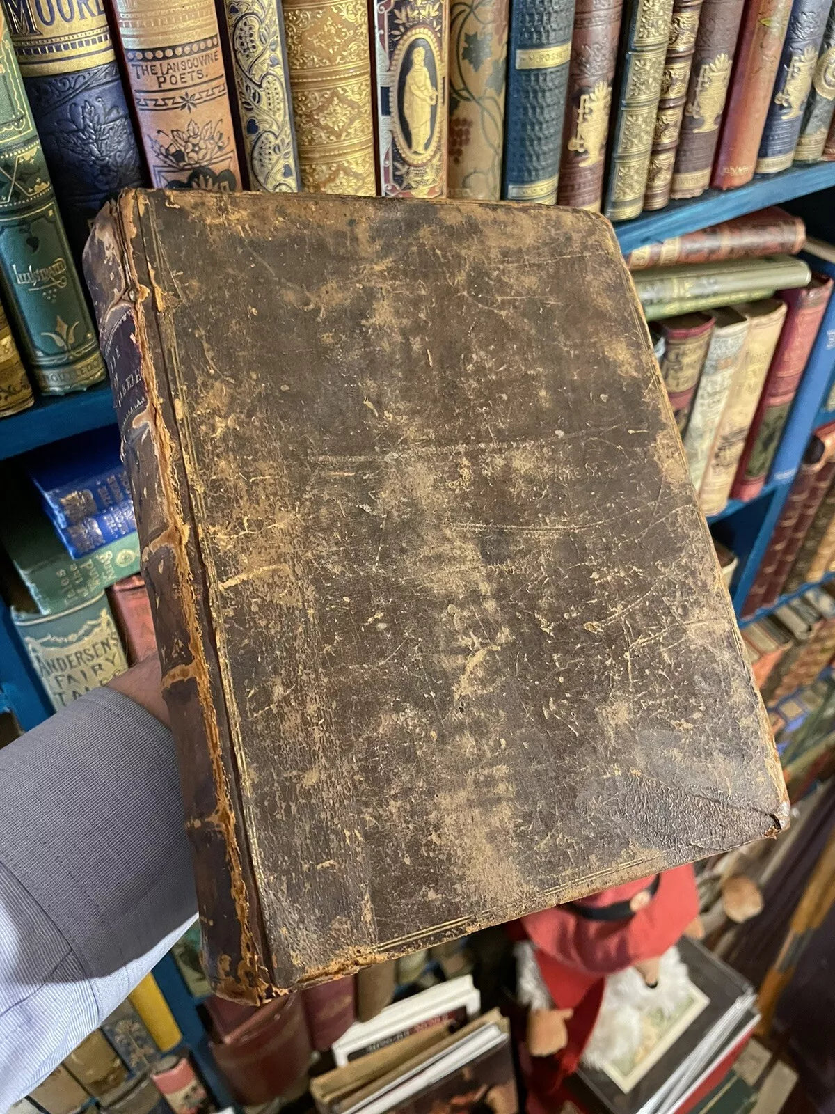 A very good copy and complete in contents. The leather binding is work and rubbed and the rear board has cracking to the leather but the board is still attached by the binders cords. Endpapers good and inner joints sound with no cracking. All contents present including the two wonderful plates as called for. Pages good throughout. Both plates are in very good condition with no tears. Overall a good copy of this scarce book.