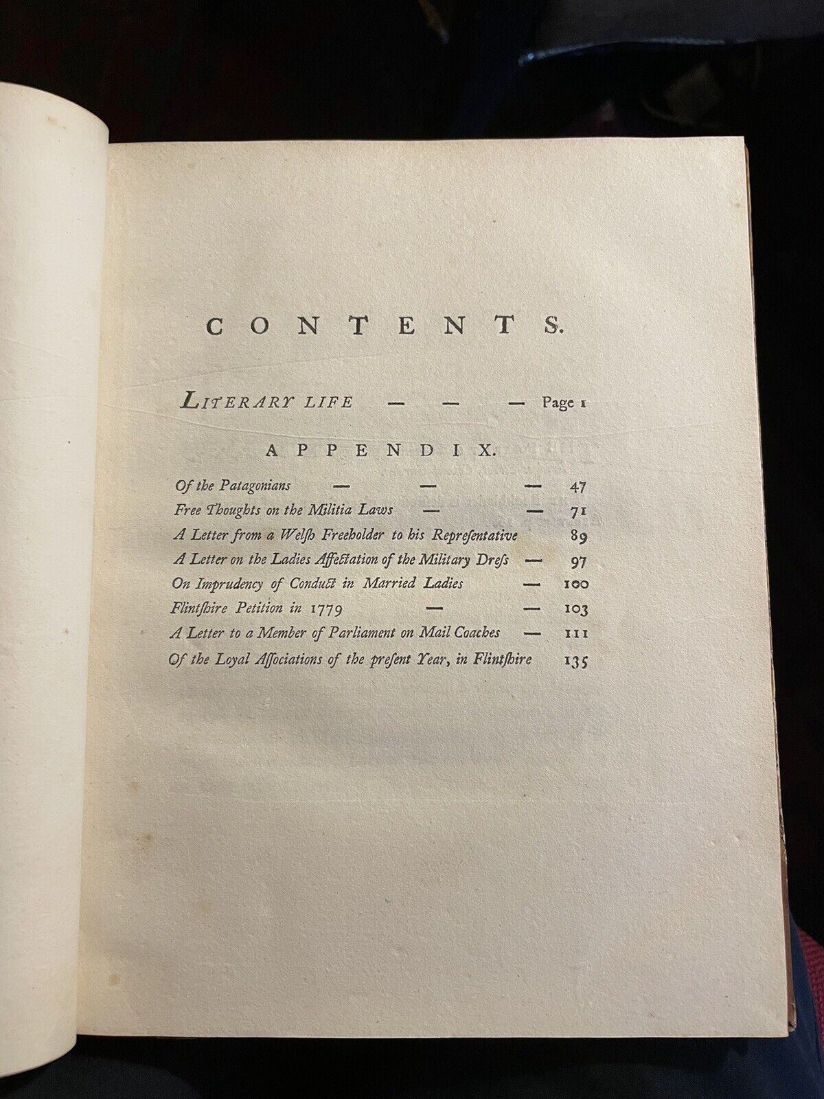 1793 The Literary Life of Thomas Pennant by Himself : Welsh Naturalist