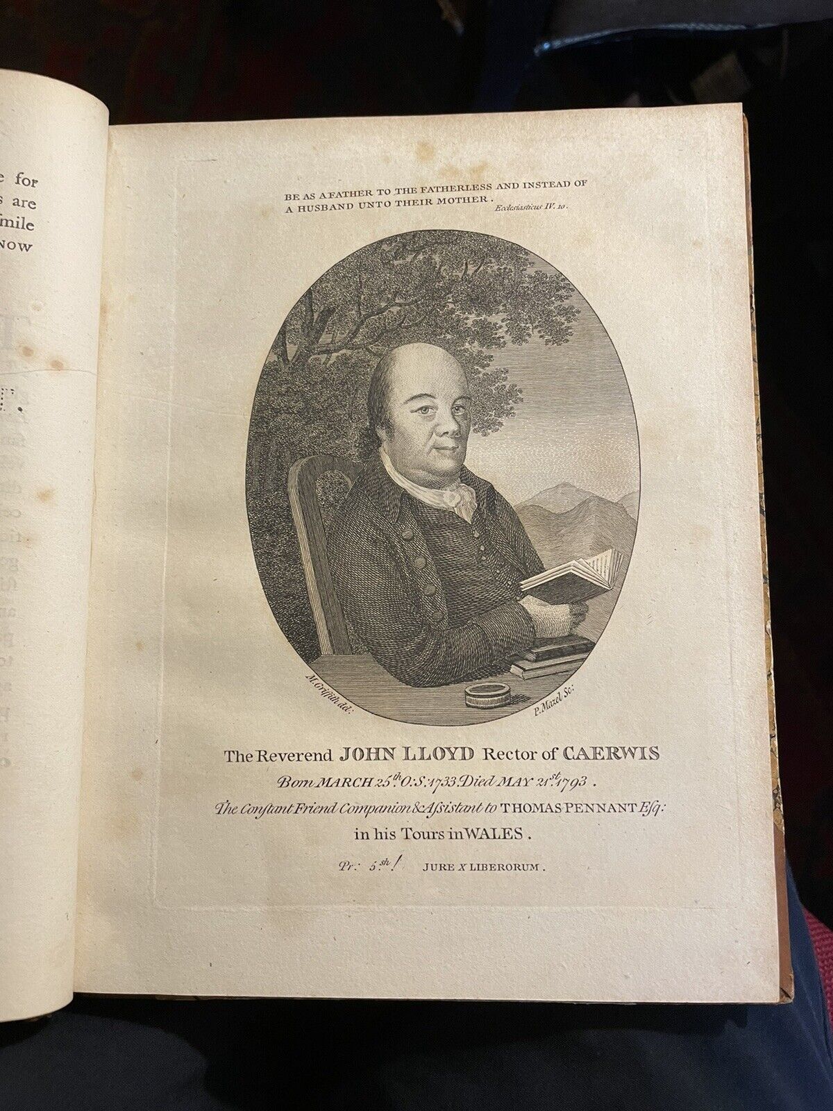 London; Sold by Benjamin and John White, and Robert Faulder, 1793. First Edition. Half-leather binding with marble boards, [8], 144 p. 25 cm. Frontispiece portrait and two other engraved plates (The Reverend John Lloyd Rector of Caerwis and Fountains Abbey).
