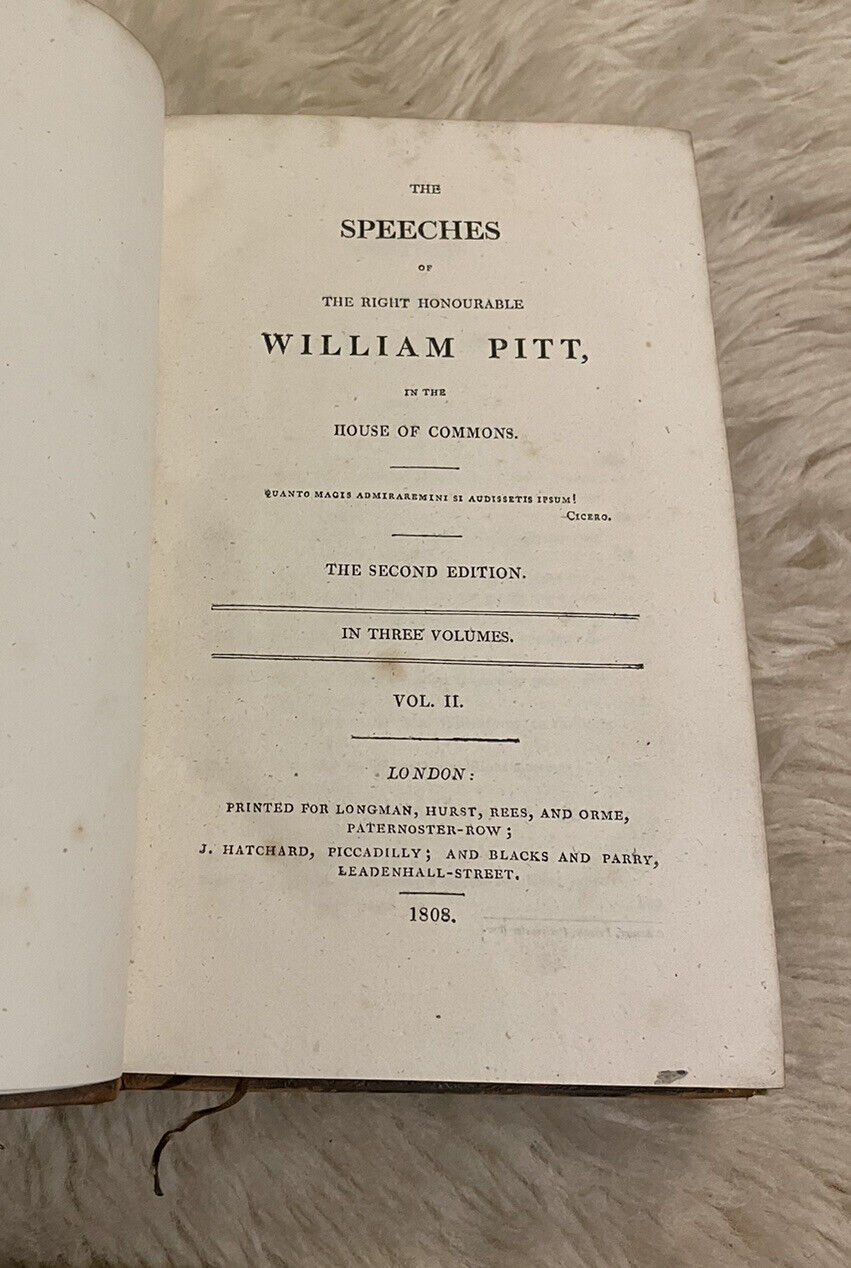 1808 The Speeches of William Pitt in the House of Commons (3 Vols) UK Politics