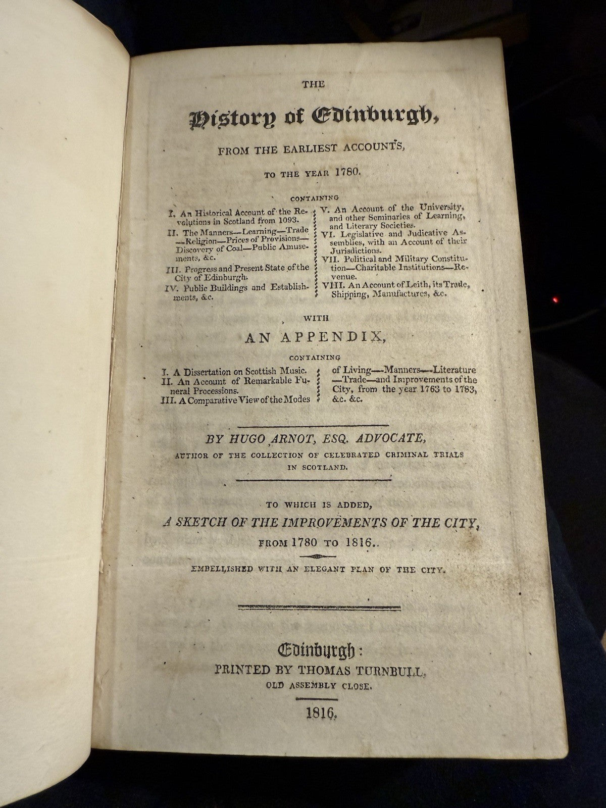 1816 The History of Edinburgh from the Earliest Accounts : Hugo Arnot