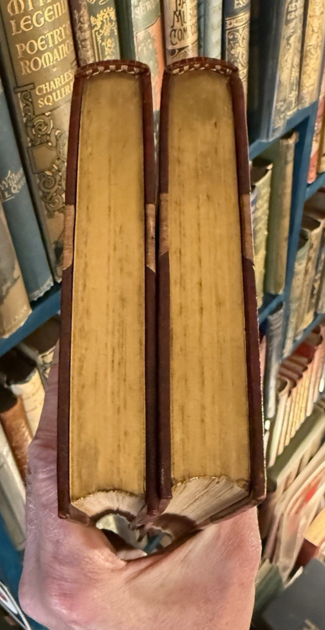 A fine copy. The leather bindings are very good with the gilt remaining bright and clear, Inner and outer hinges secure with no cracking and both binding tight and square. Endpapers very good. All contents present and pages very good throughout. Overall a handsome 2-volume set in very good condition.