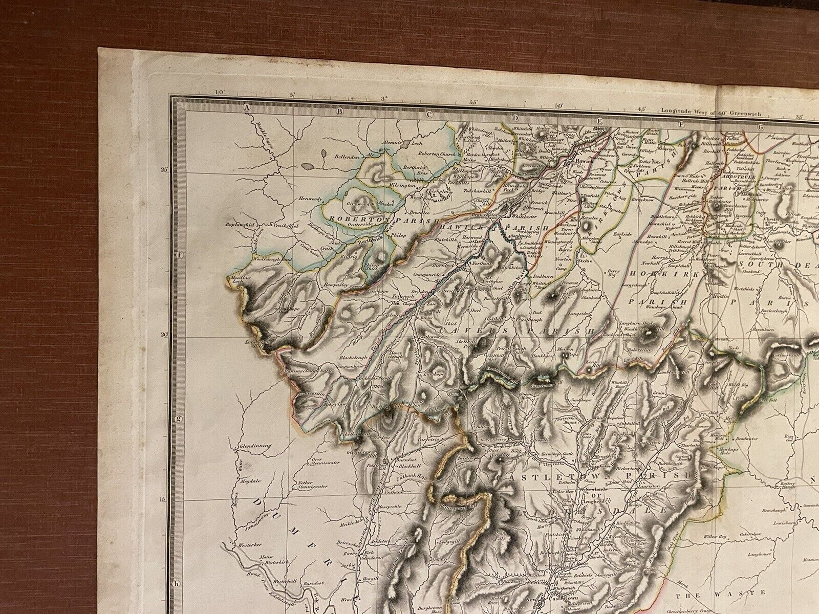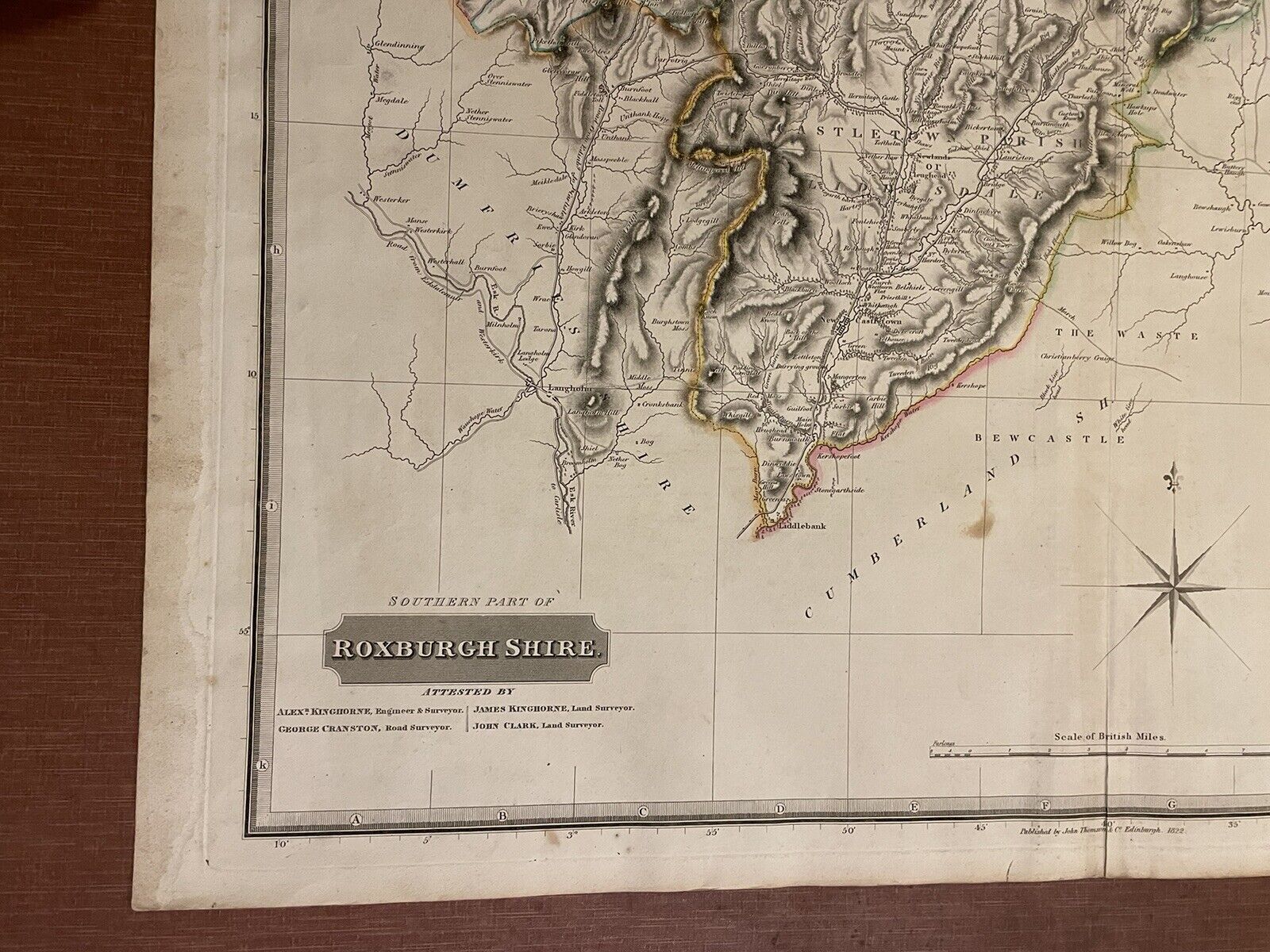 Large Original Antique Map of South Roxburghshire, Scotland (1822)
