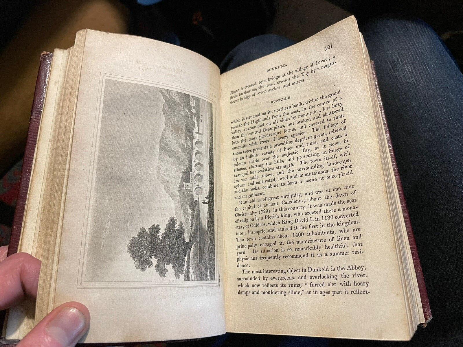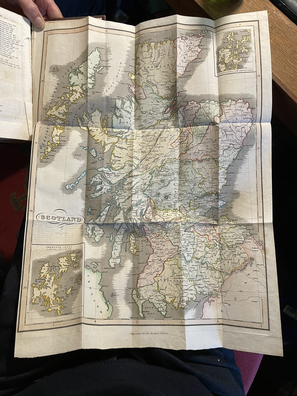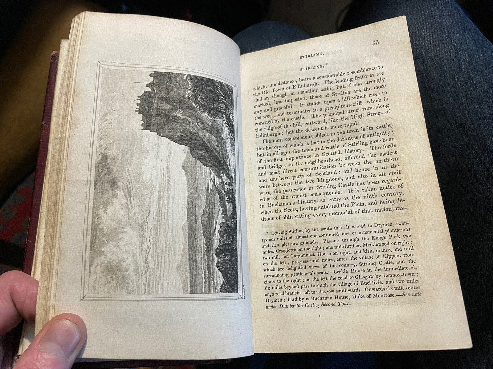 Printed for Stirling & Kenney, Edinburgh, 1830. Third Edition. Full leather binding, 8vo, 420 pages, with 2 large folding colour maps and illustrated with single-page maps and engraved plates of Scottish scenes.