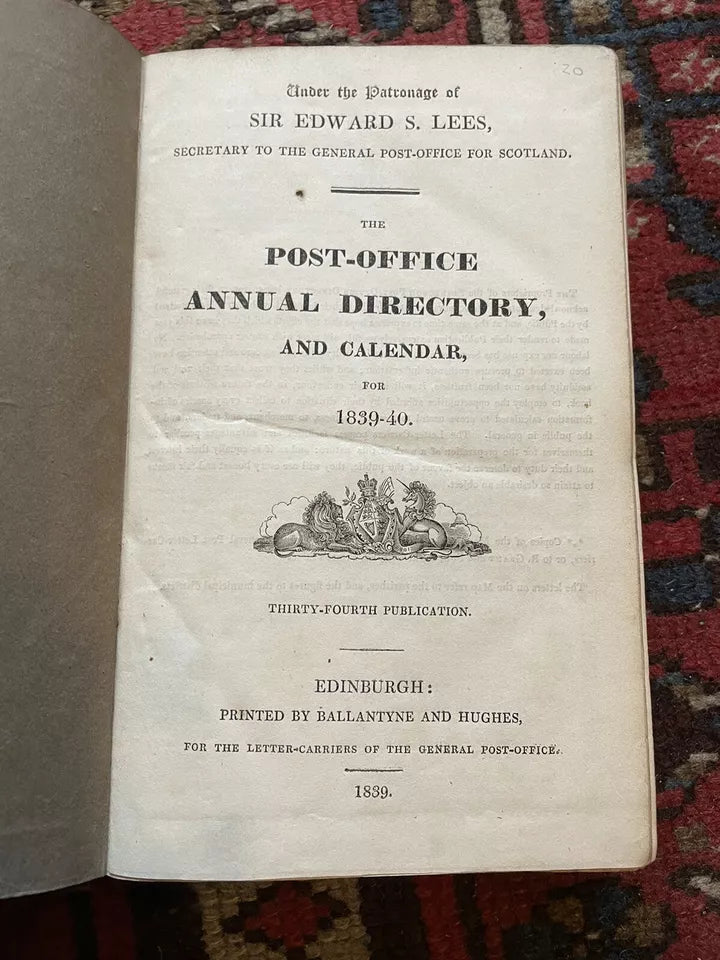 1839 The Post Office Annual Directory & Calendar 1839-40 : Edinburgh & Leith