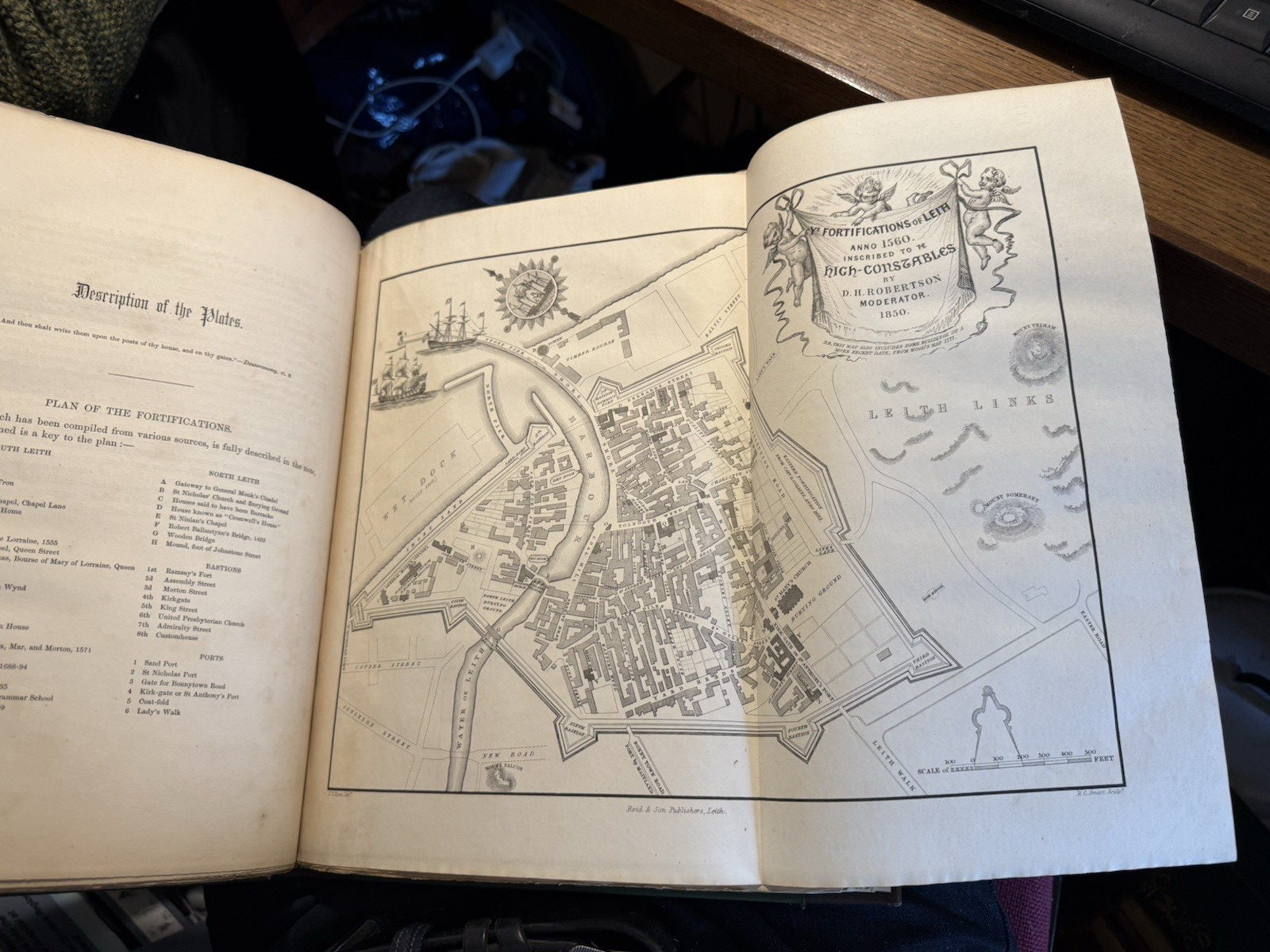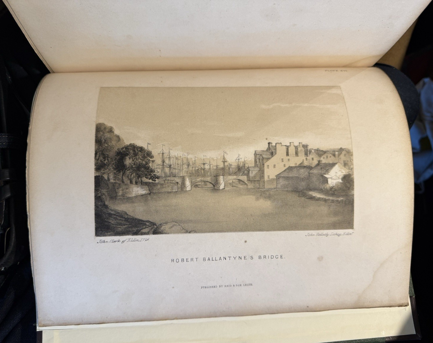 Printed and Published by Reid & Son, Leith, 1851. First Edition. 4to (33 x 26cm), modern half-leather binding, pictorial title page plus a letterpress title-page, viii, 128pp., 4-page list of subscribers, with a folding Plan of the Fortifications of Leith 1560, and 18 tinted lithograph plates.