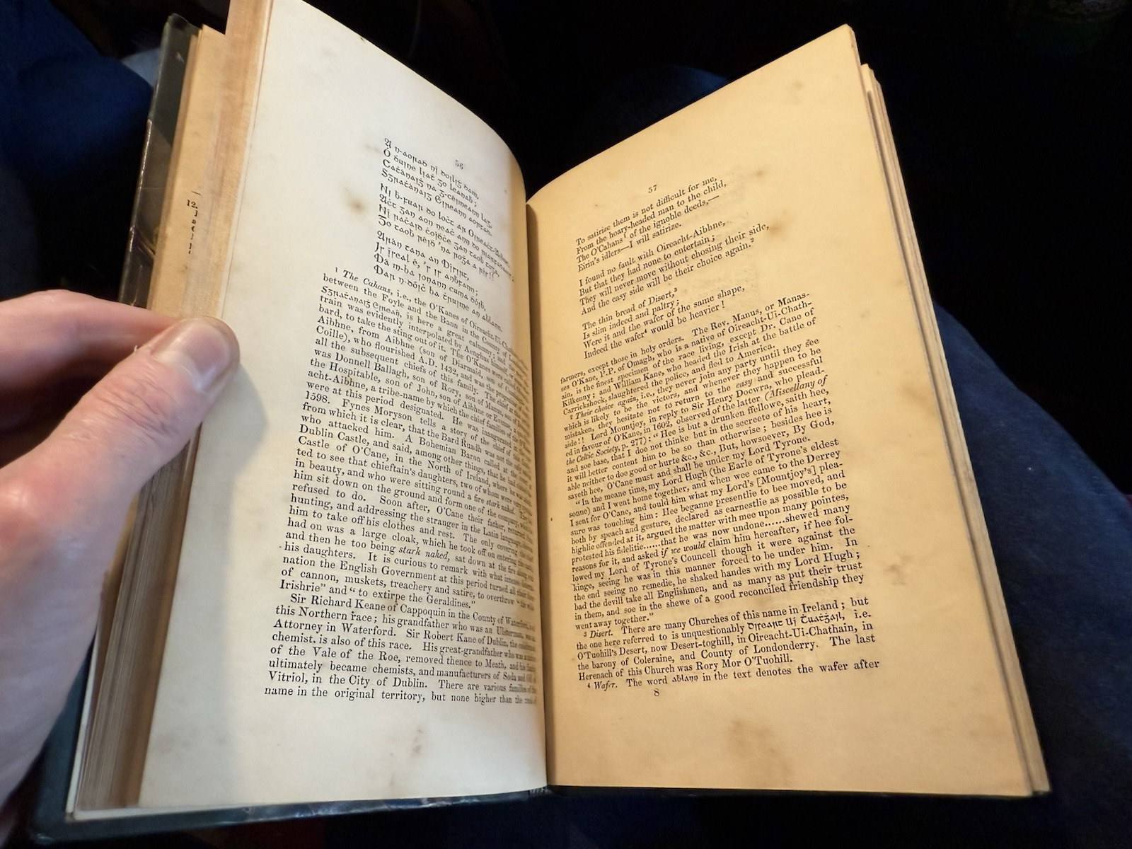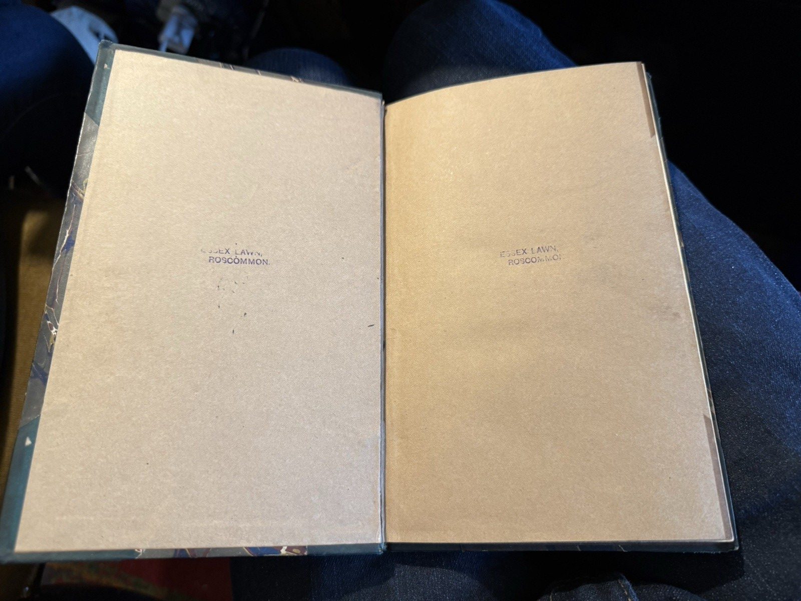 The leather binding is good with signs of age and the title label is kissing. Two ink stamps to front endpapers (Essex Lawn Roscommon) also ink stamp to foot of title page. All contents present. Some spotting to title pages and text throughout but nothing to heavy (see images for examples). Name written to title page. Overall a fairly good copy.