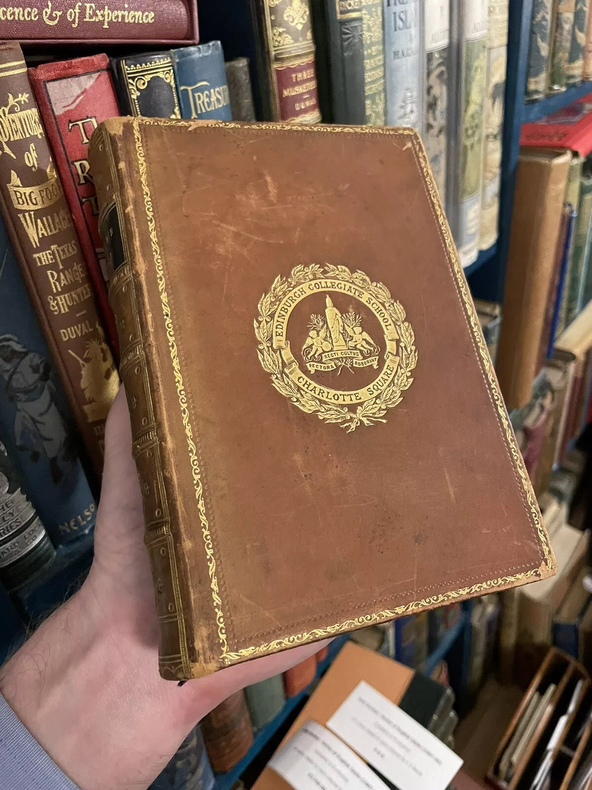 A very good copy of this scarce title. The leather binding is good with some light rubbing in places but hinges both inside and out are secure with no cracking, endpapers good, all contents present and pages clean throughout, presentation slip pasted to the inside front board. Overall a very good copy.