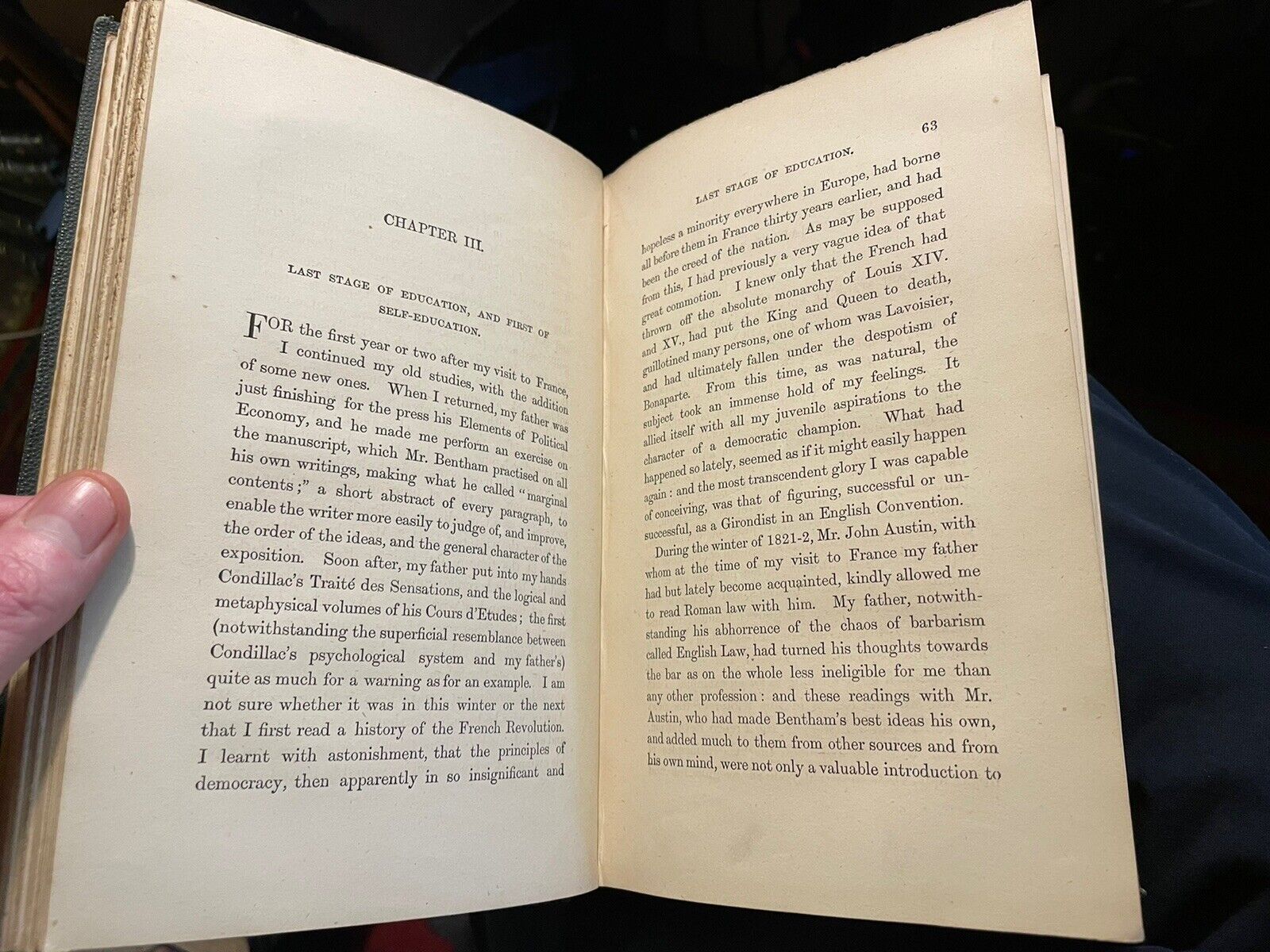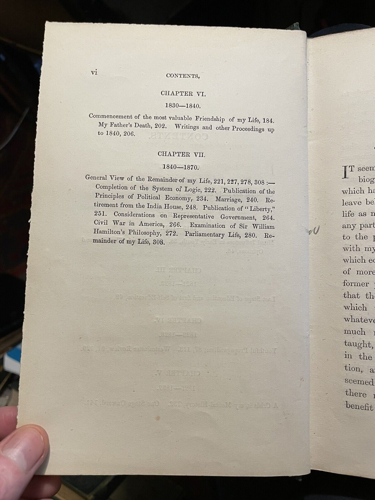 1873 Autobiography by John Stuart Mill : 1st Edition / 2nd Issue with Errata