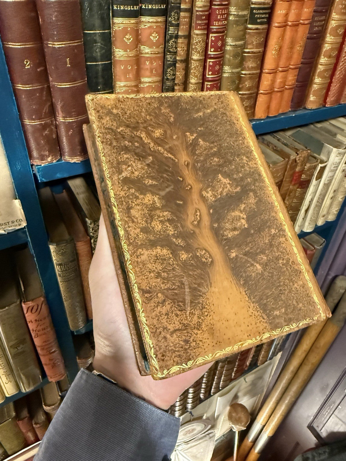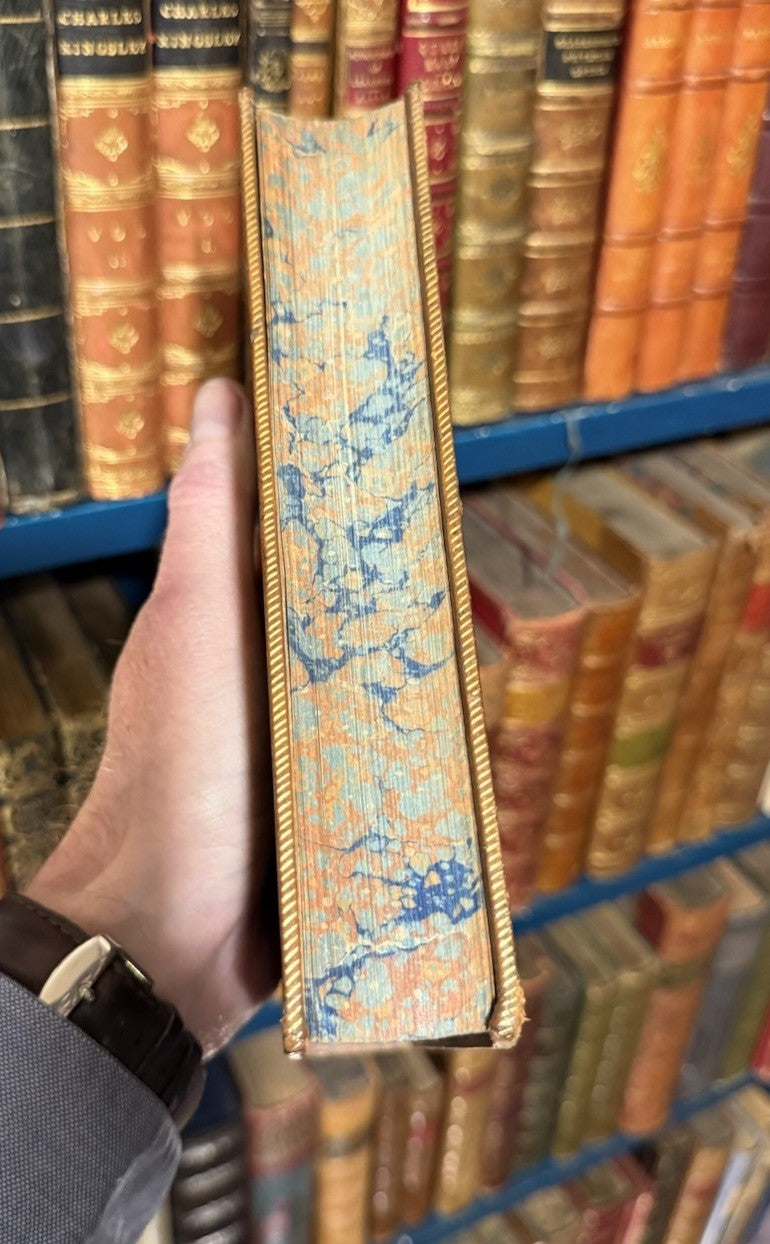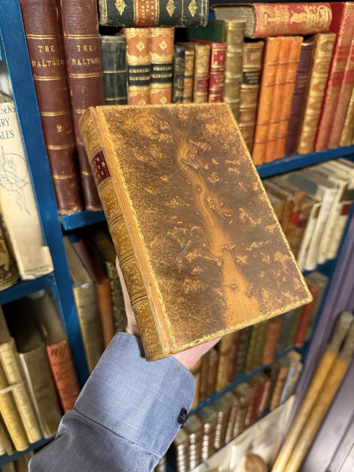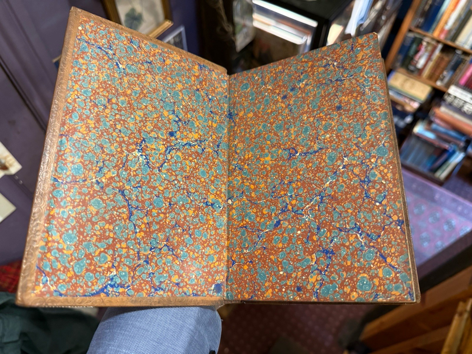 A very good copy. Tree-calf and gilt binding in very good condition with small markings on front and back cover. Spine is in good condition. Marble enpapers are very good. FFEP has a few written signatures in pencil, none by author however. All Endpapers have age-toning. All pages in good condition throughout with small signs of age-toning. Overall a very fine copy.