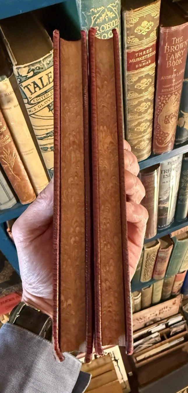 Published by Bernhard Tauchnitz, Leipzig, 1887. FIrst Edition. Complete in Two Volumes. Full leather bindings. 8vo. Marble page edges and marble endpapers. 262 + 246 pages.