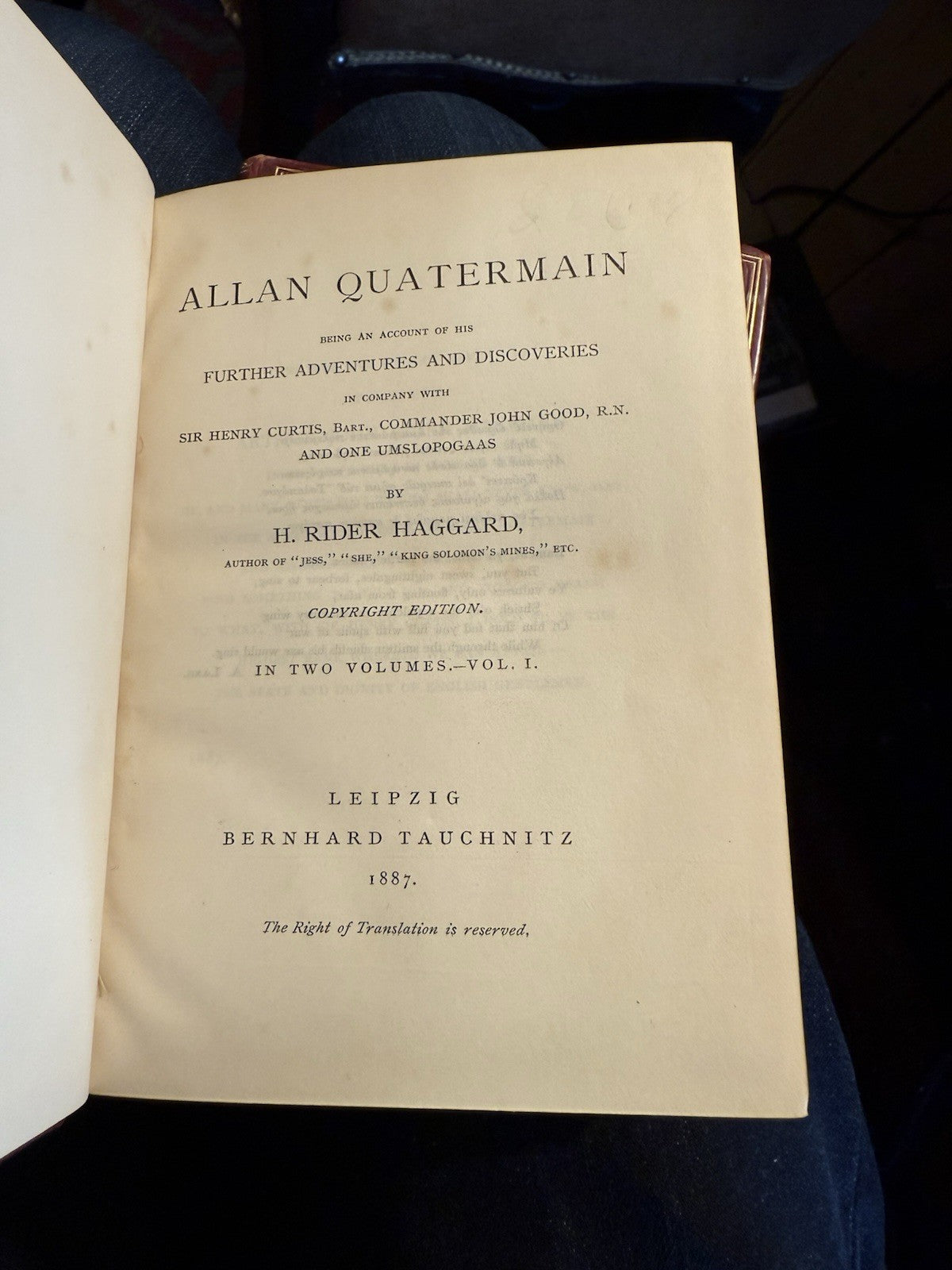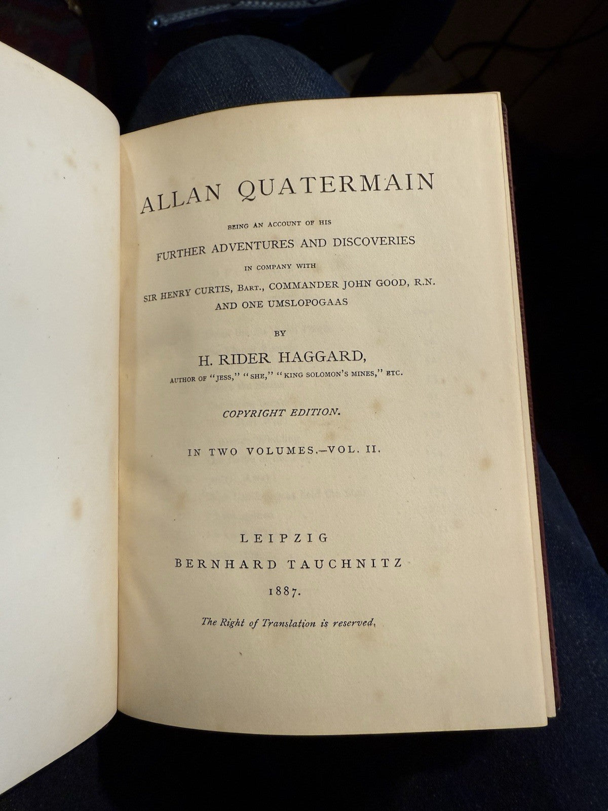 1887 S. Rider Haggard : Allan Quartermain (2 Volumes) Tauchnitz Leather Bindings