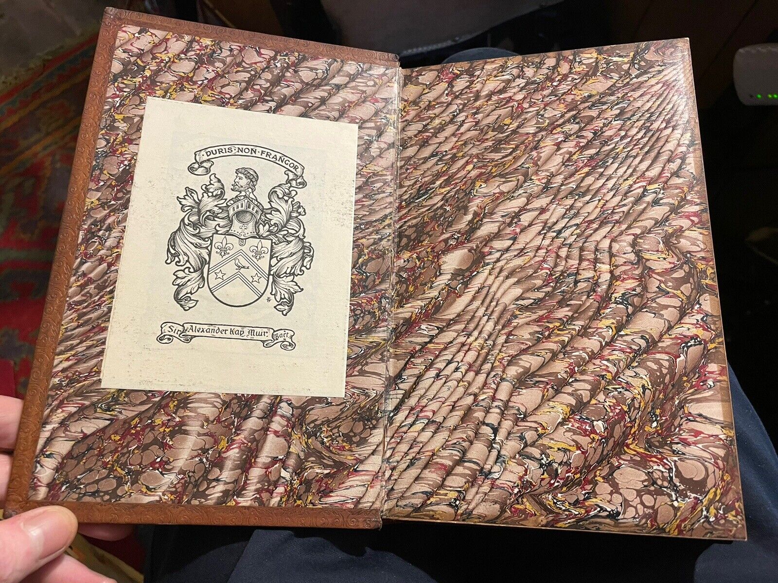 A very good first edition. The calf binding is very good with just a couple of small marks to the upper board and a little sunning to the rear board. Endpapers very good and the inner joints are secure with no cracking, all contents present and pages in very good clean condition throughout. Armorial bookplate to front inside board (Sir Alexander Kay Muir, 2nd Baronet (1868–1951)). Overall a very good clean and handsomely-bound first edition.