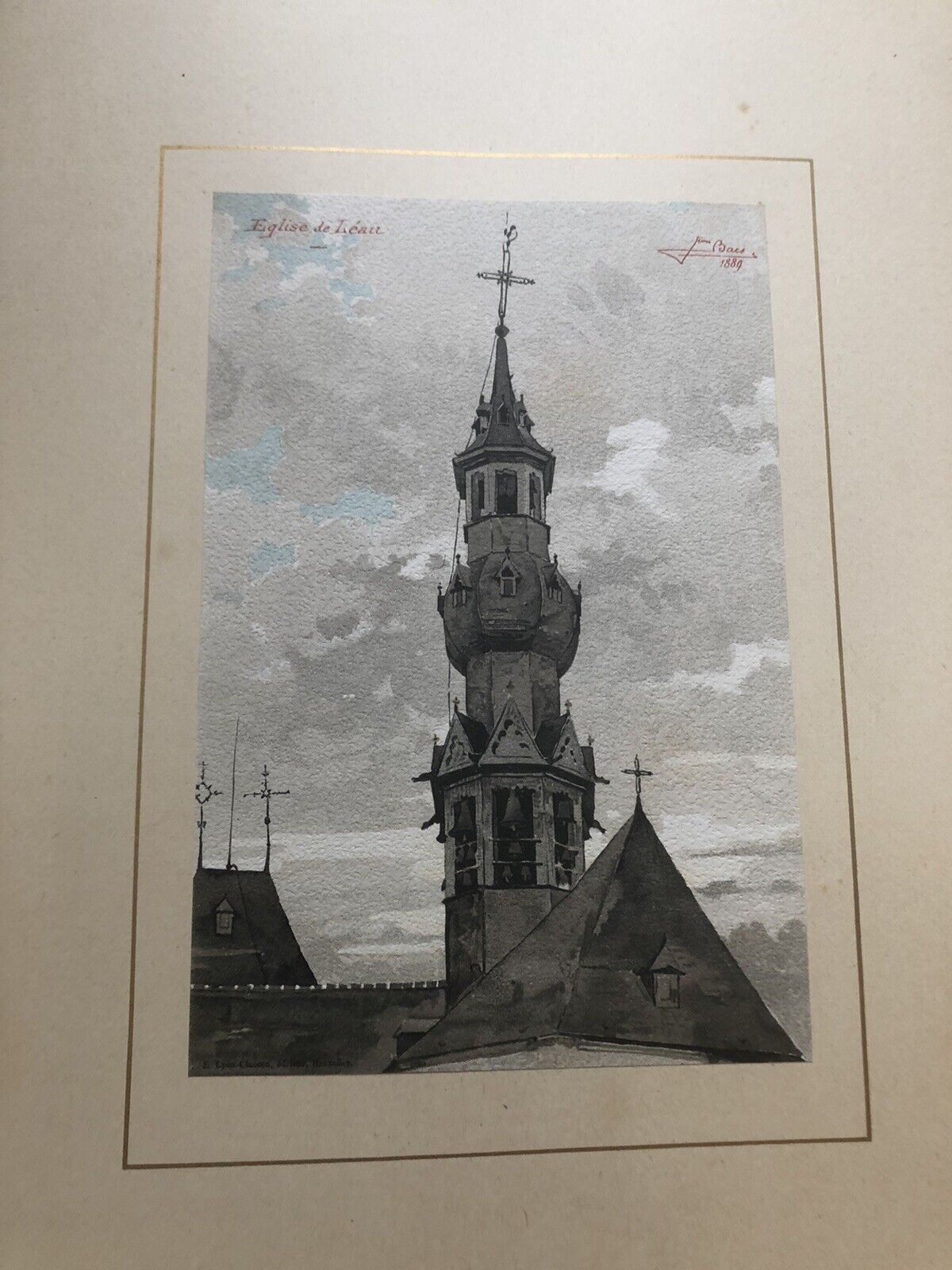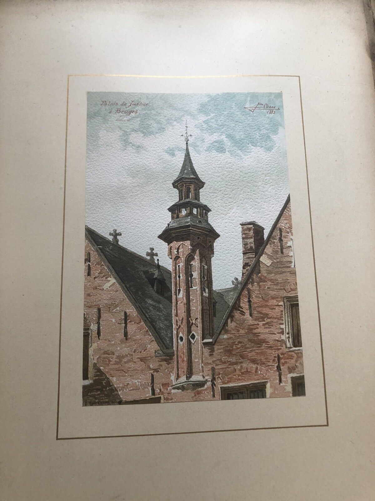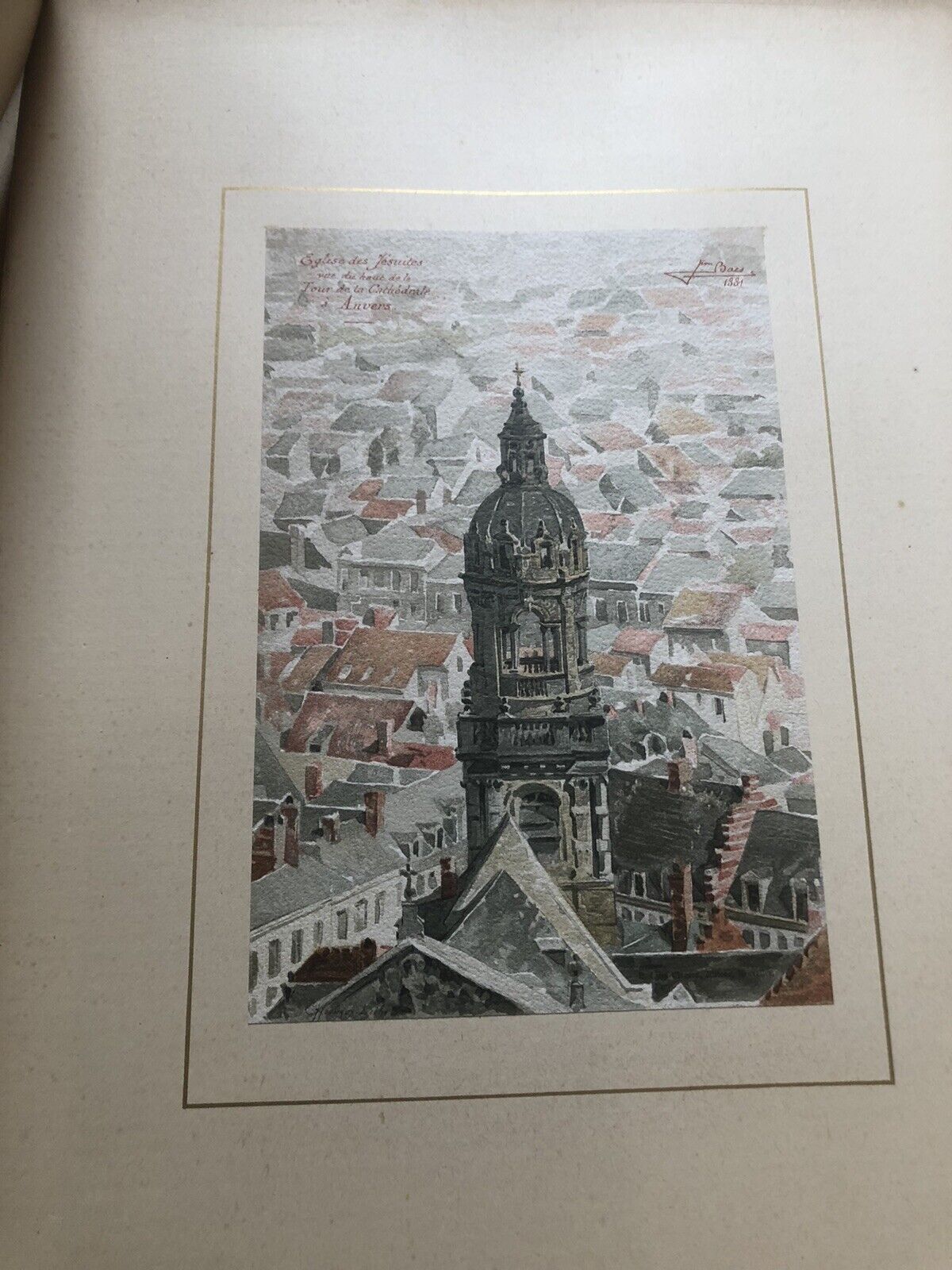 An exquisite collection of 50 tipped-in colour lithographs after watercolor painting by Architect Jean Baes depicting Belgium's historic towers and turrets.