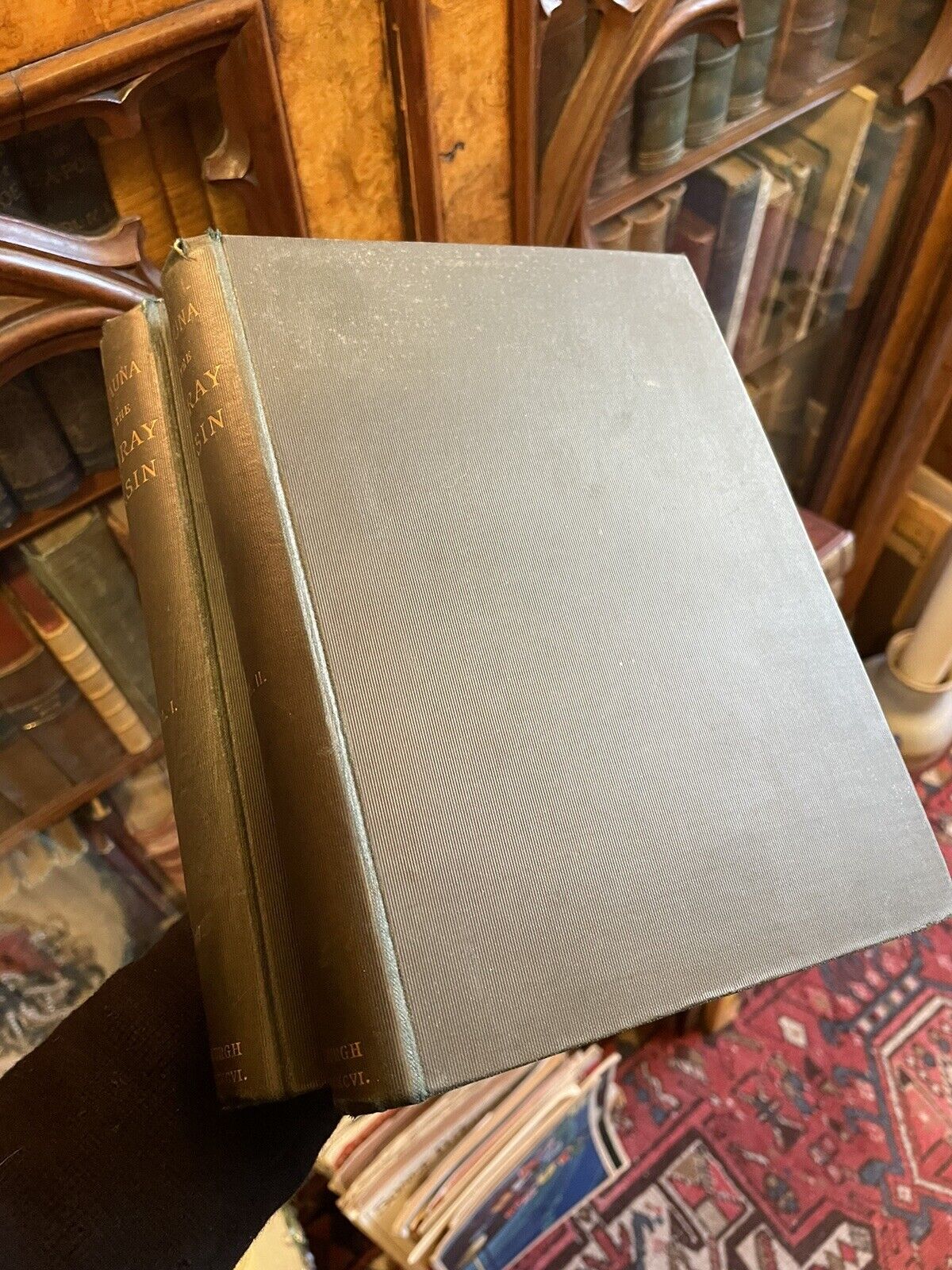 David Douglas, Edinburgh, 1895. First Edition. Complete in Two volumes in two. 8vo (22.0 x 16.0 cm). Hardback, green cloth with gilt title to spine, 8vo, wine clay endpapers, 638 pp. [I: xxii, 306, (i); II: 309, (and xxiv - advertisements)]; two half titles, two photographic title pages (tissue-guarded), one folded panorama, one multi-folded full colour map mounted on linen, 28 mostly tissue-guarded plates [18 unnumbered photogravure plates; one chromolithographed plate, nine engraved or lithographed plates showing fossils (including three double-sized plates], several fine text illustrations.