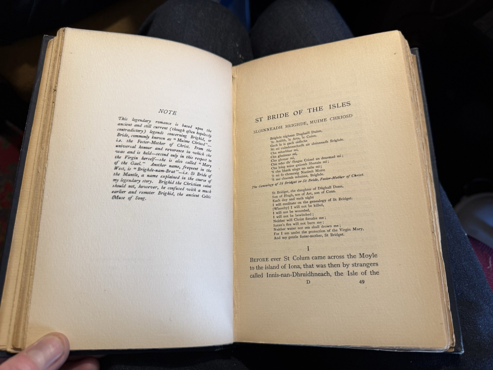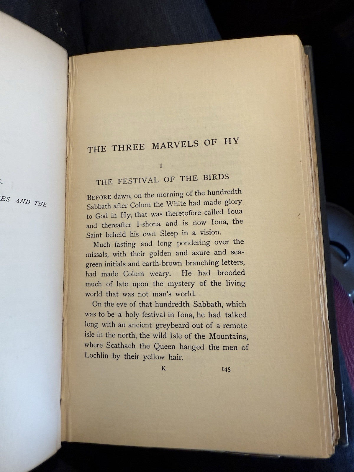 This is a presentation copy form the author (whose real name was William Sharp) and his wife Elizabeth. The meassge reads: "To our dear friend Adelaide who housed so many of our books during our wanderings, from Elizabeth and the author, F.M = W.S. march 1906"