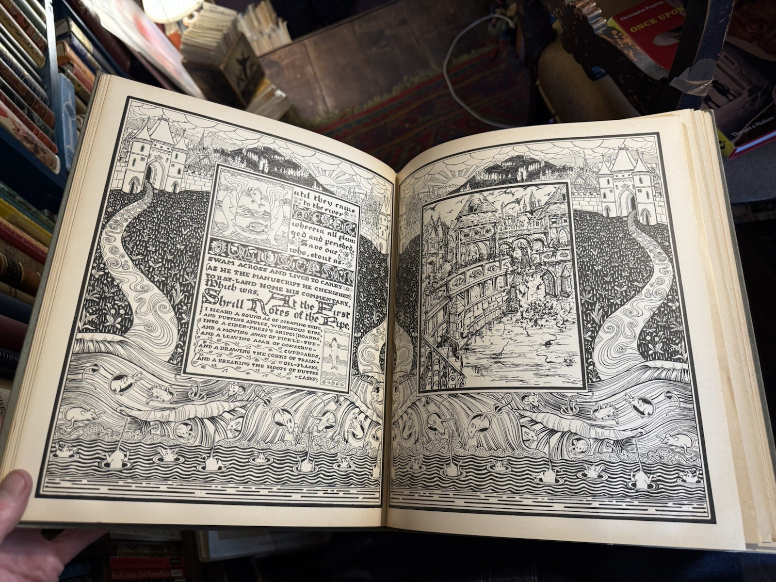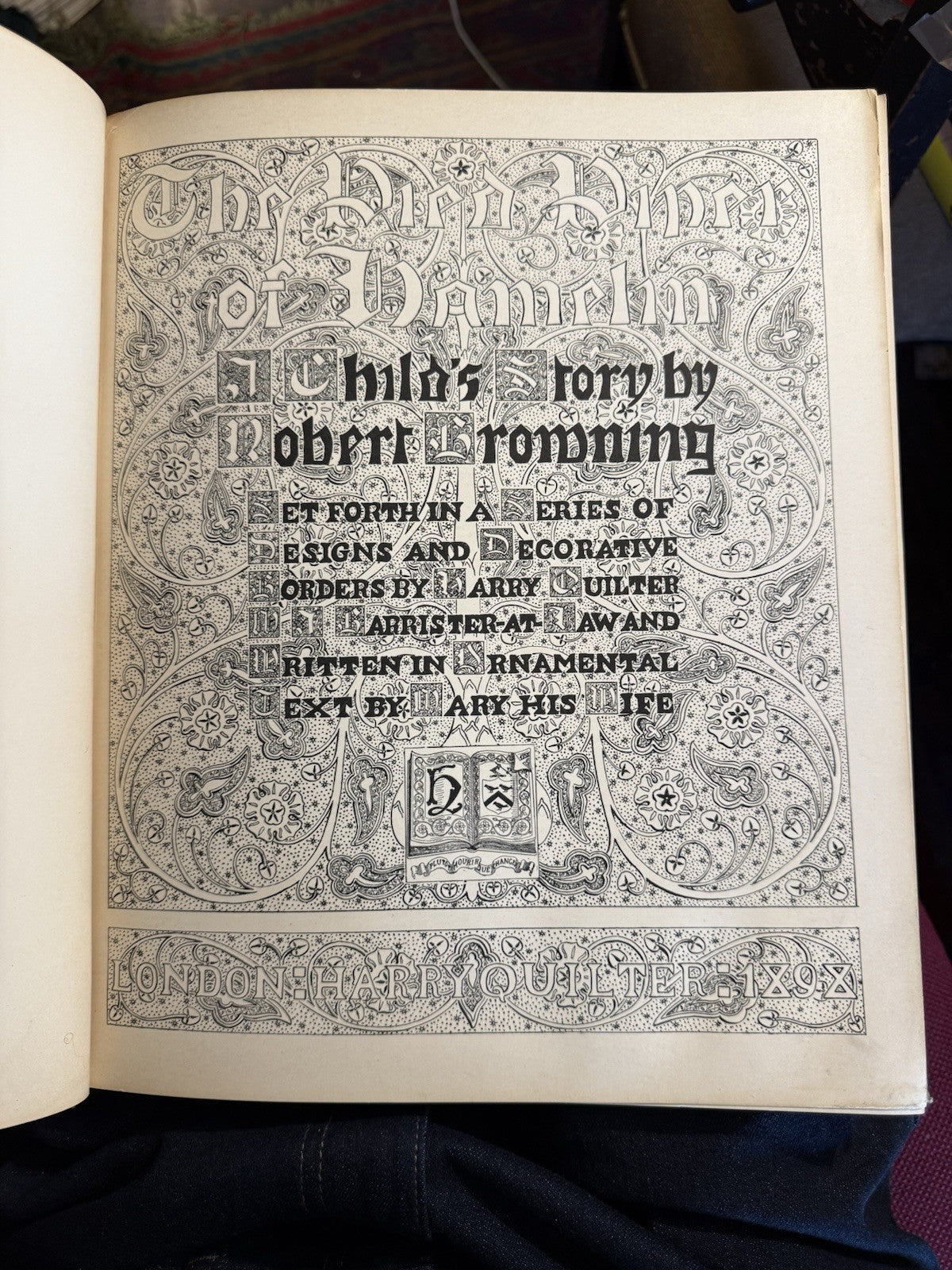 A Child's Story by Robert Browning, set forth in a series of designs and decorative borders by Harry Quilter, M.A., Barrister-at-Law, and written in ornamental text by Mary, his wife