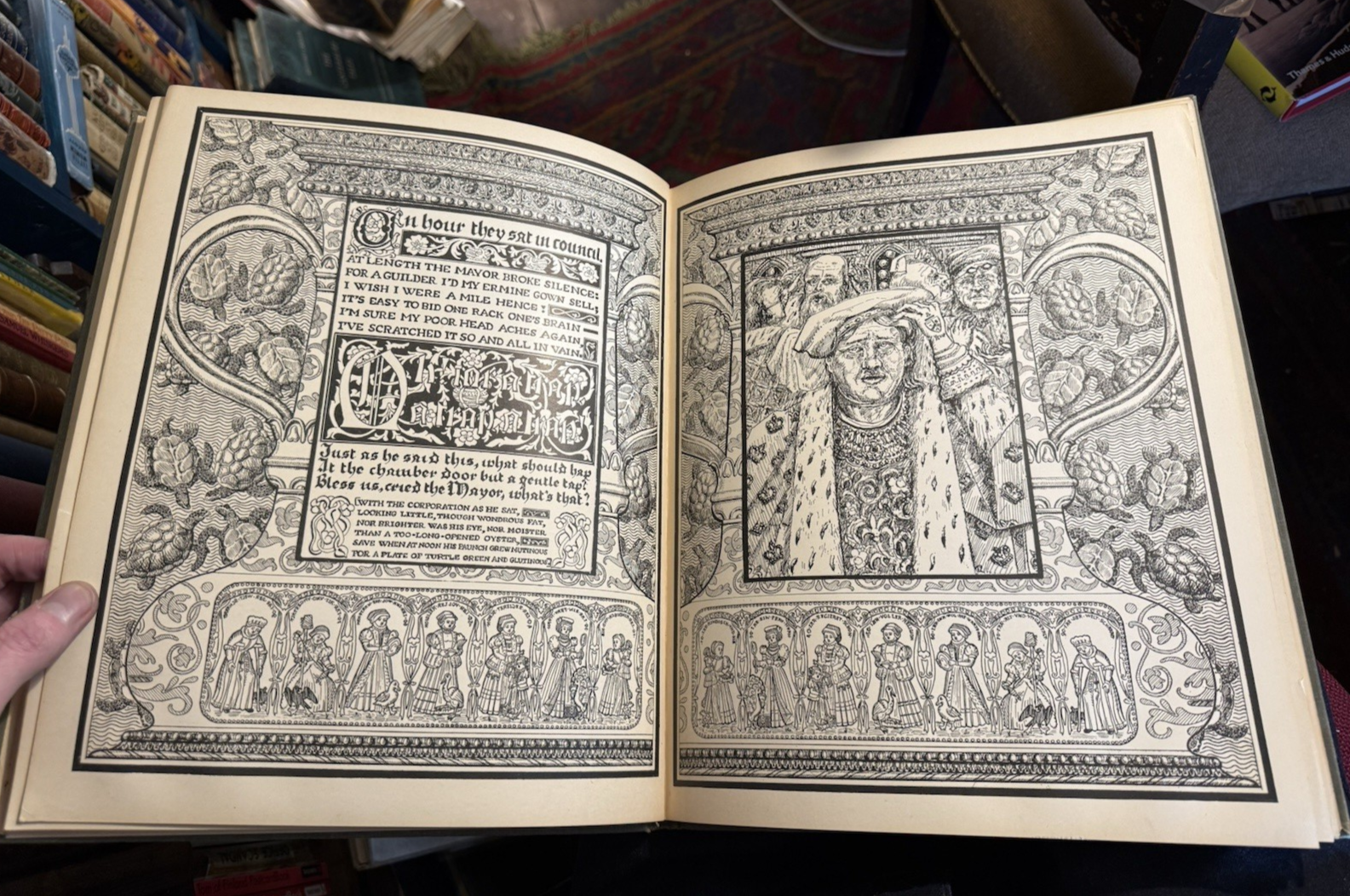London: Harry Quilter, 1898. First Quilter Edition. Quarto (33 x 27cm), pp.[60]. Every page is beautifully engraved with illustrations and wide decorative margins by Harry and Mary Quilter. Each leaf separated with a protective tissue guard. Publisher's green cloth with gilt titles and decoration to spine and upper.