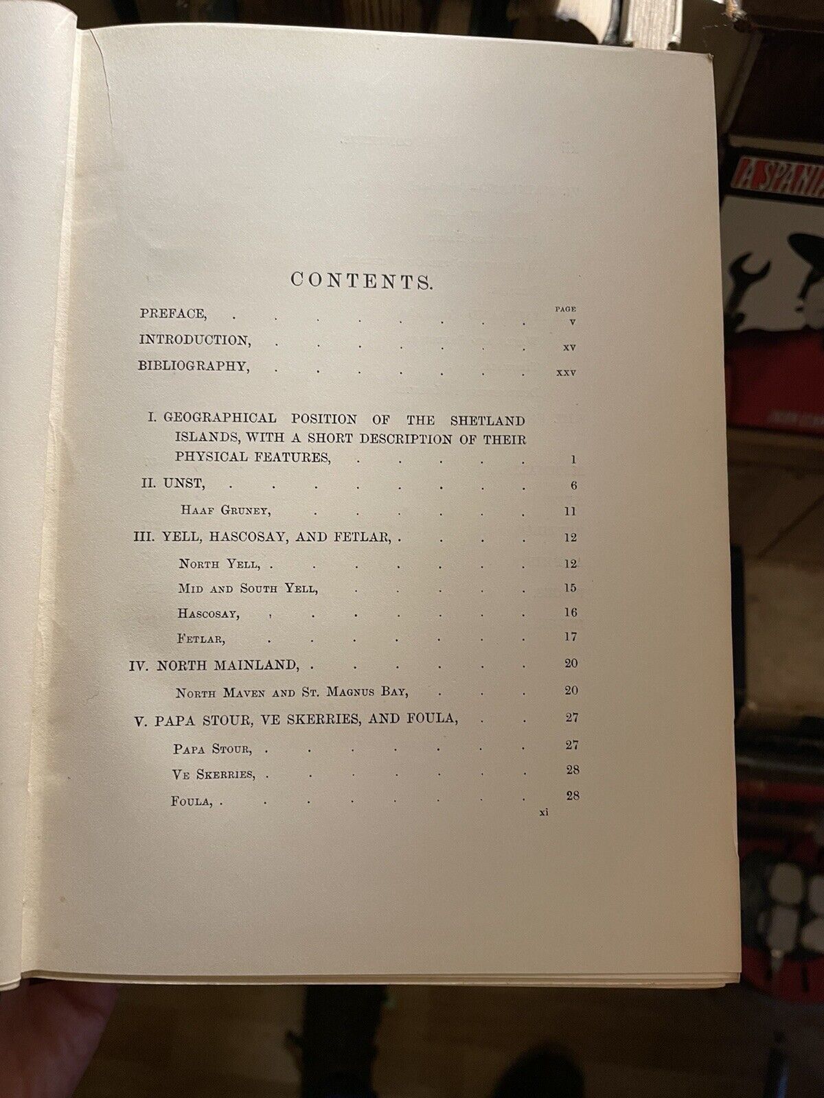 David Douglas, Edinburgh, 1899. First Edition. Hardback, green cloth with gilt title to spine, 8vo, wine clay endpapers, pp xxix; text 248 pp with 12 full page photographic plates and 2 photographs in text. Double-page colour map of Shetland at the rear.