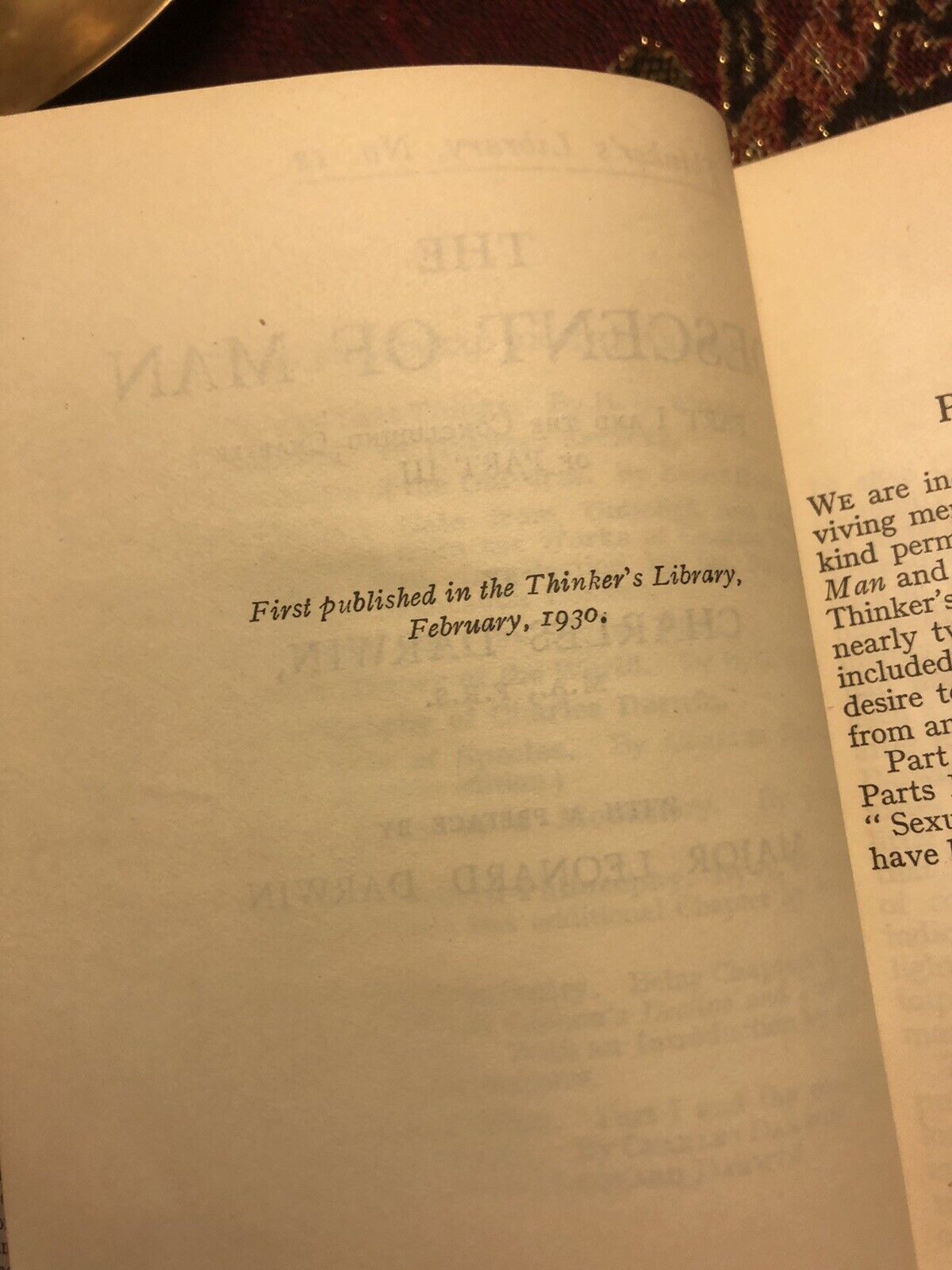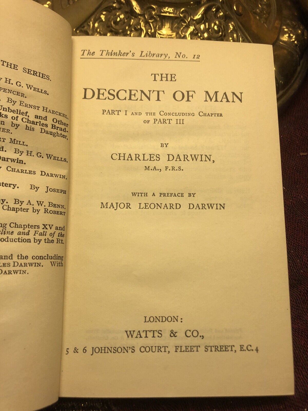 1930 Charles Darwin : The Descent of Man (Thinker's Library) VGC