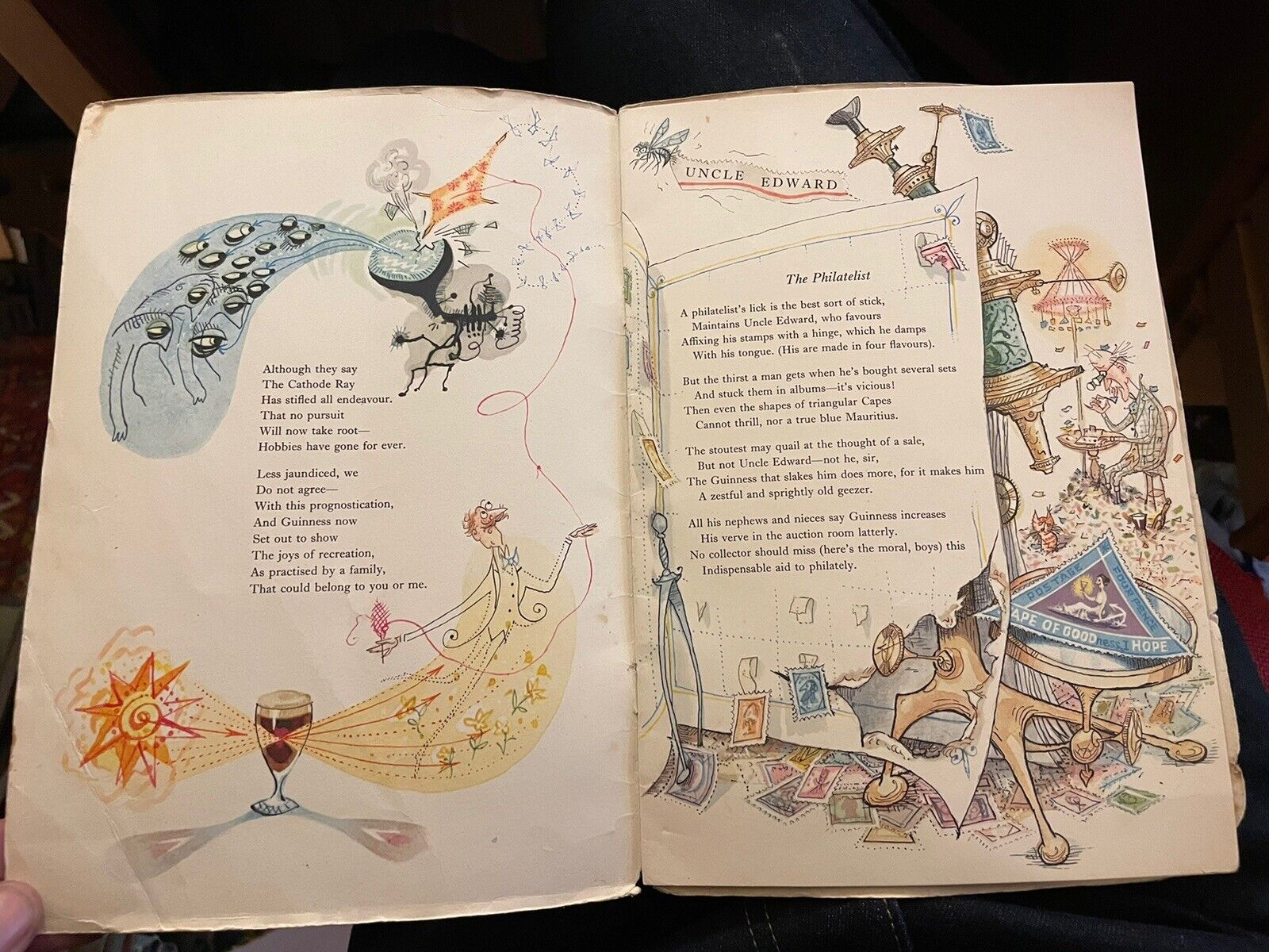 1958 GUINNESS STOUT Promo ADVERTISING Rowland Emett HOBBY HORSES WITH RIDERS