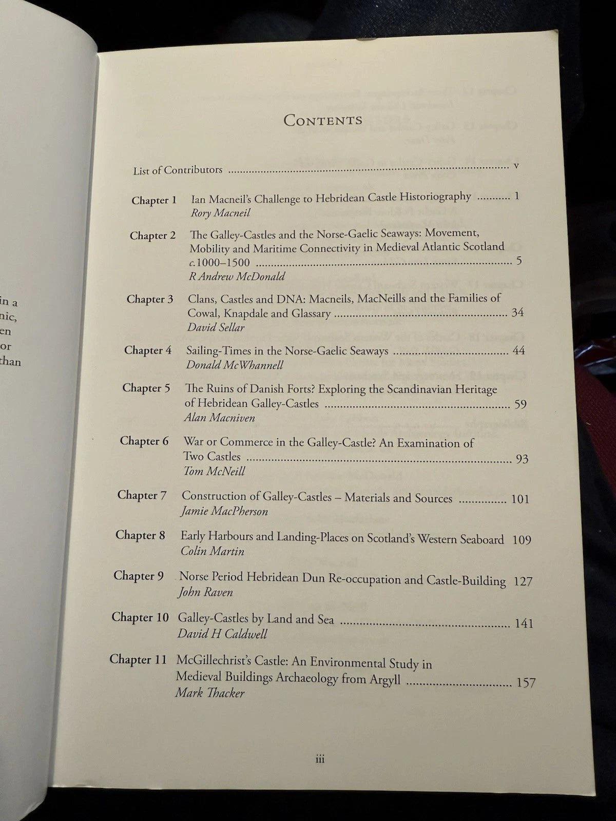 An outstanding feature of the Norse-Gaelic seaways is the network of dramatic castles built on or near the shore. They typically dominated main lines of sea communication, and were accessed by ‘birlinn’ or galley. They played a central role in the Hebrides during the Hebrides’ heyday, broadly from the Norse period through to the end of the Lordship of the Isles, when the islands were at the crossroads of the Norse-Gaelic world. In recent years considerable inter-disciplinary scholarly effort has gone into reinterpreting their history, dates, functions, and method of construction. In 2015 the Islands Book Trust, in conjunction with Historic Scotland and Macneil of Barra, held an international conference with the aim of studying four aspects of the castles: Physical, Historical Evidence, Functions, and Relations. The conference brought together some of the leading experts in their fields and their conclusions are published here in this book, which will appeal to anyone with an interest in these unique buildings.