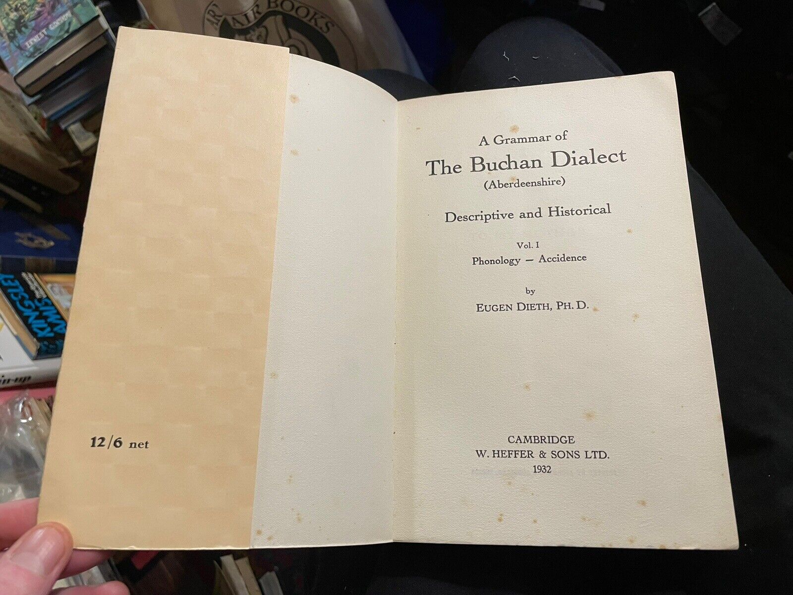 In 1932, Eugen Dieth published the first volume of A Grammar of the Buchan Dialect, which focused on phonology and accidence. The book was published by the University Press in Cambridge. The second volume, which was to focus on syntax, was never published as Dieth died before it could be completed, but the uncompleted second volume was reconstructed and edited by J. Derrick McClure.