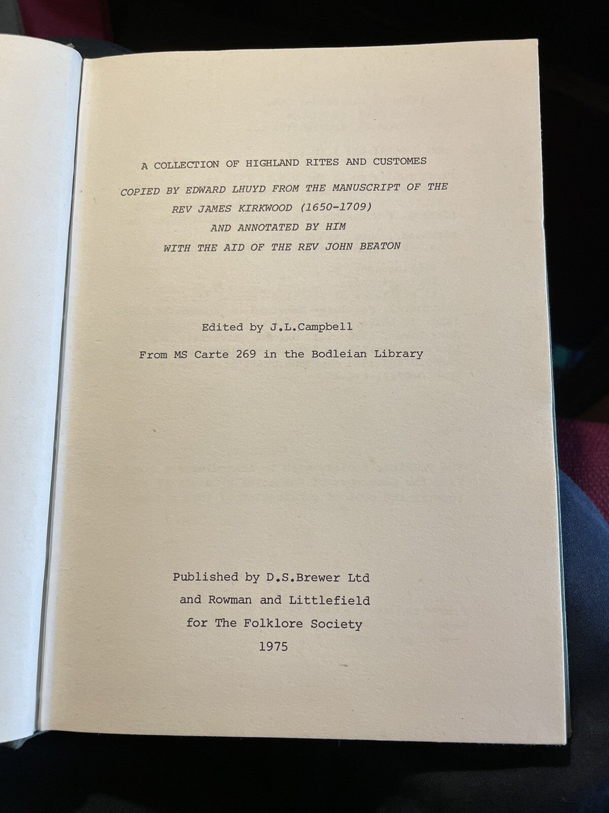 A Collection of Highland Rites and Customes : J. L. Campbell : James Kirkwood