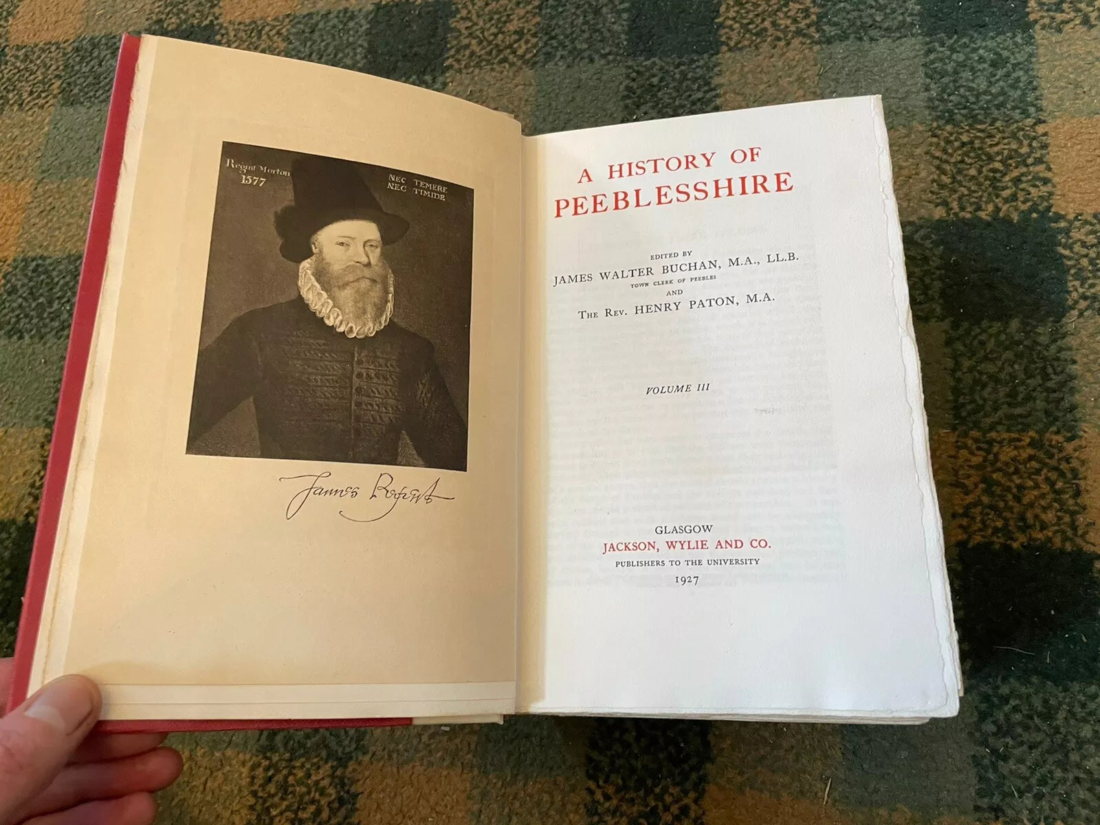 Published by Jackson, Wylie & Co, Glasgow, 1925-27. Limited to 100 copies printed on handmade paper of which this is number 33 and initialed by teh author (JWB.). Large thick 8vo, vellum spines with cloith sides. ppxii + 498; xv + 555; xix + 723, with a wealth of plates, pedigrees and maps, many folding, all present and correct.