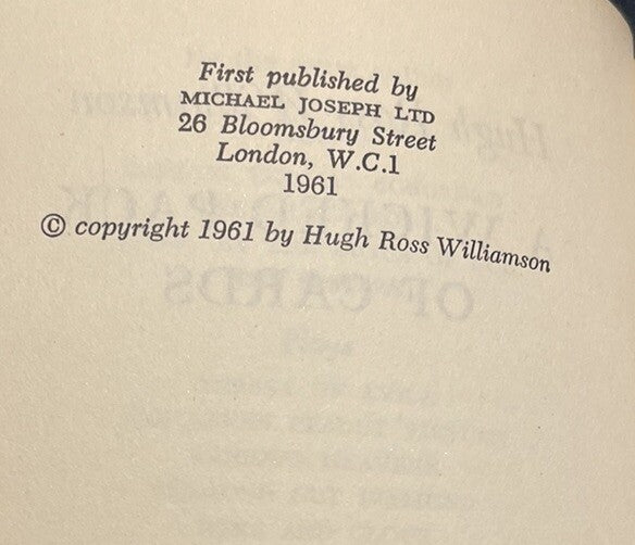 Published by Michael Joseph, London, 1961. First Edition. Hardback in original dust jacket. 8vo. 205 pages.