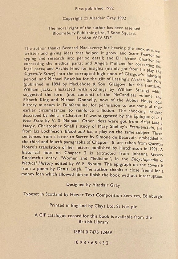 Alasdair Gray : Poor Things : 1st/1st Edition + Rare Erratum 1992 : Fine Copy