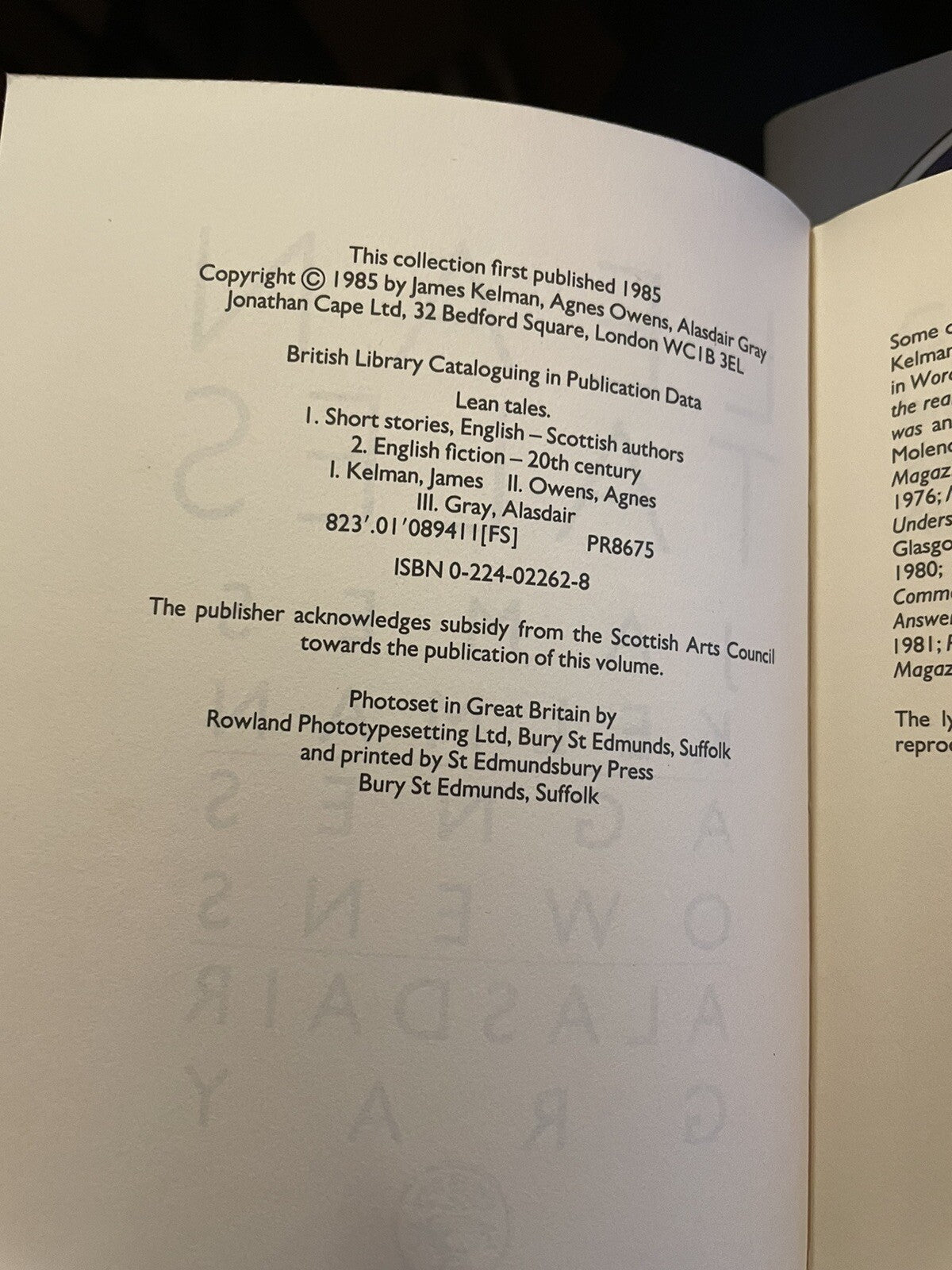 Alasdair Gray (SIGNED) James Kelman, Agnes Owens - Lean Tales 1st/1st