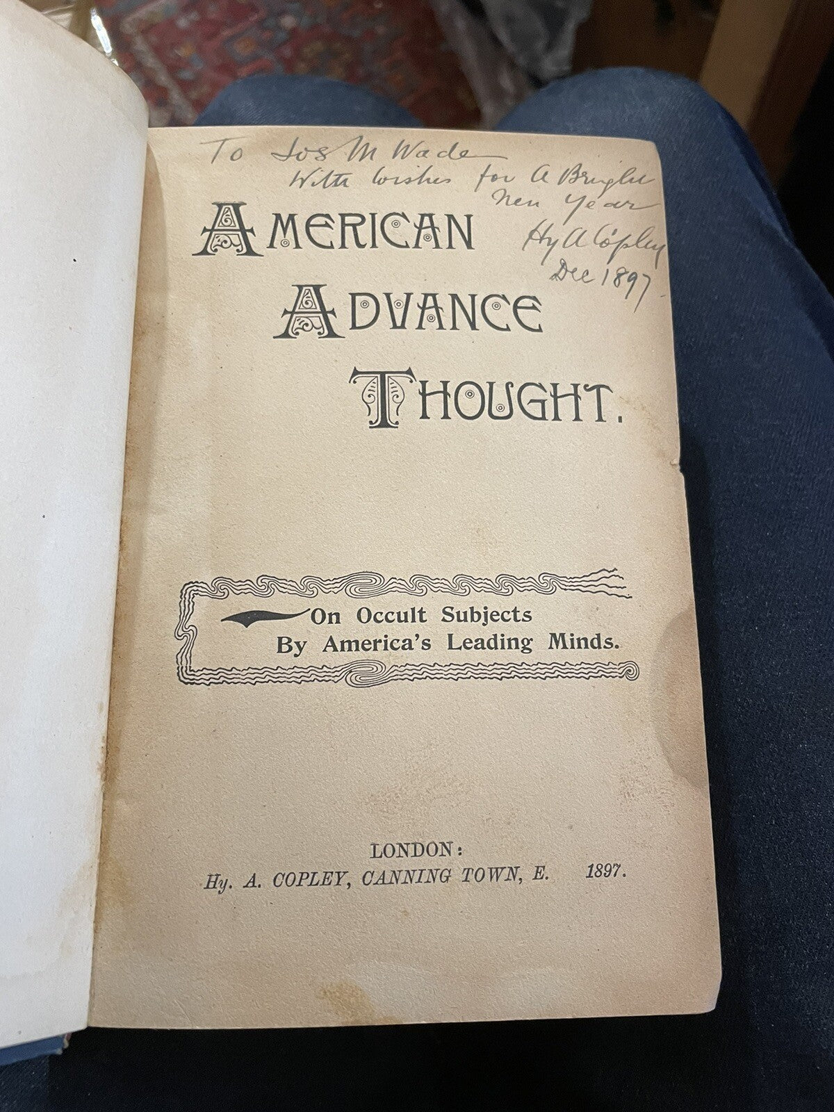 Inscribed to one of the contributors Jos. M Wade by the publisher to the title page and dated 1897. "To Jos. M Wade with wishes for a Brighter New Year, Hy A Copley Dec 1897"