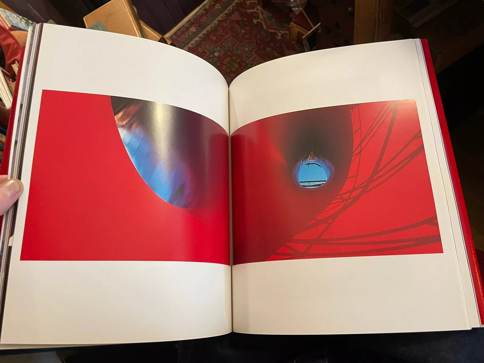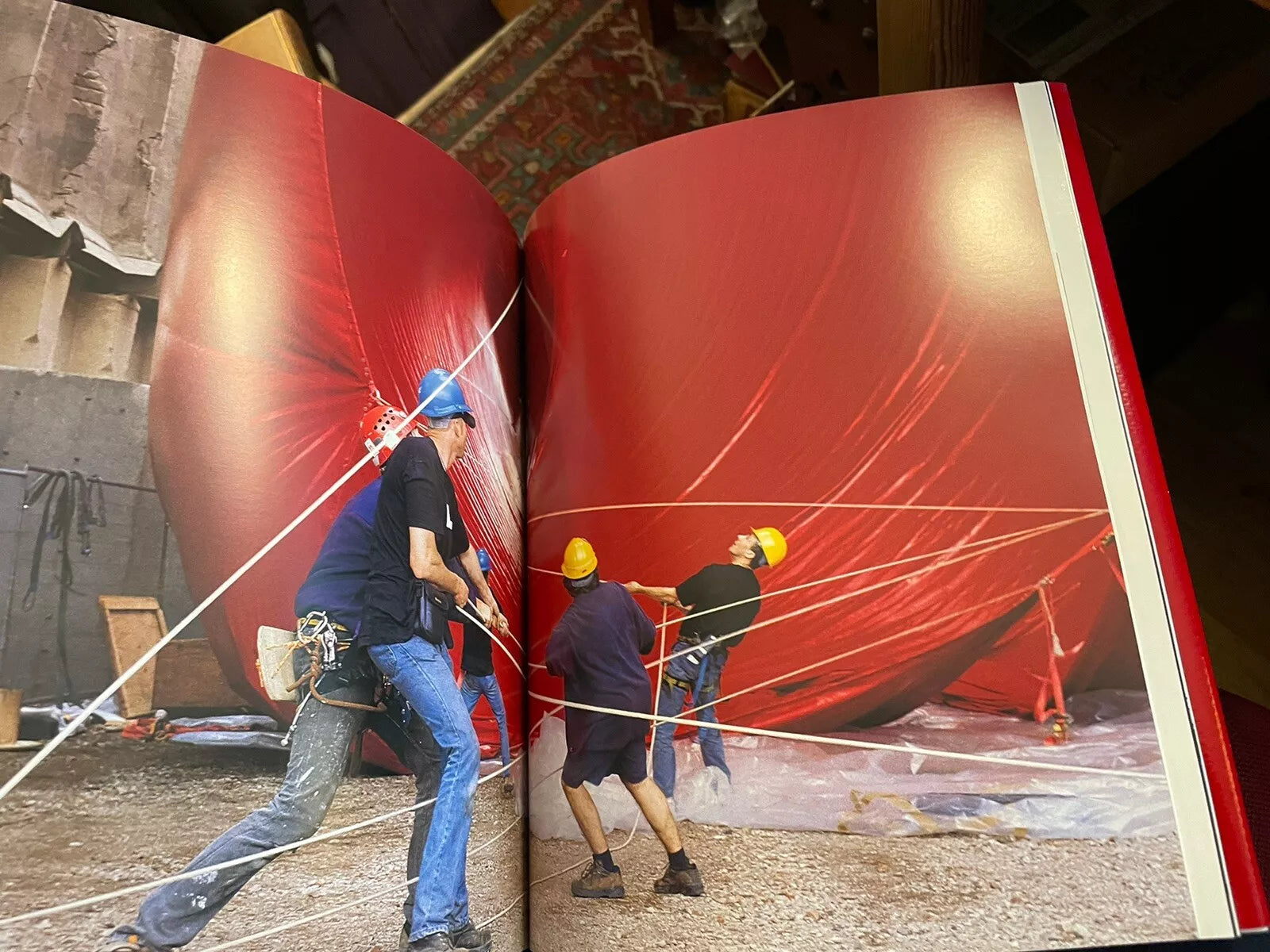 His work was a double trumpet-shaped membrane of deep red, semi-translucent PVC, stretching the entire length of the building, over 50 meters long and more than 25 meters high at both ends.