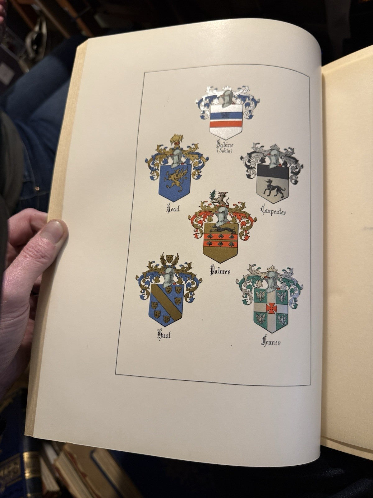 This impressive genealogical volume comes from the celebrated Allied Families Genealogical and Biographical series, a monumental 20th-century undertaking that traced the heraldry and histories of numerous American families. Issued in substantial, lavishly illustrated, the set is notable for its profusion of hand-coloured coats-of-arms and finely produced bindings, often made for private subscribers or presentations. Each volume in the series centers on particular family lines, and the present example—the Bucklin & Allied Families volume—brings together a wide constellation of related families deeply rooted in the colonial and early American period.