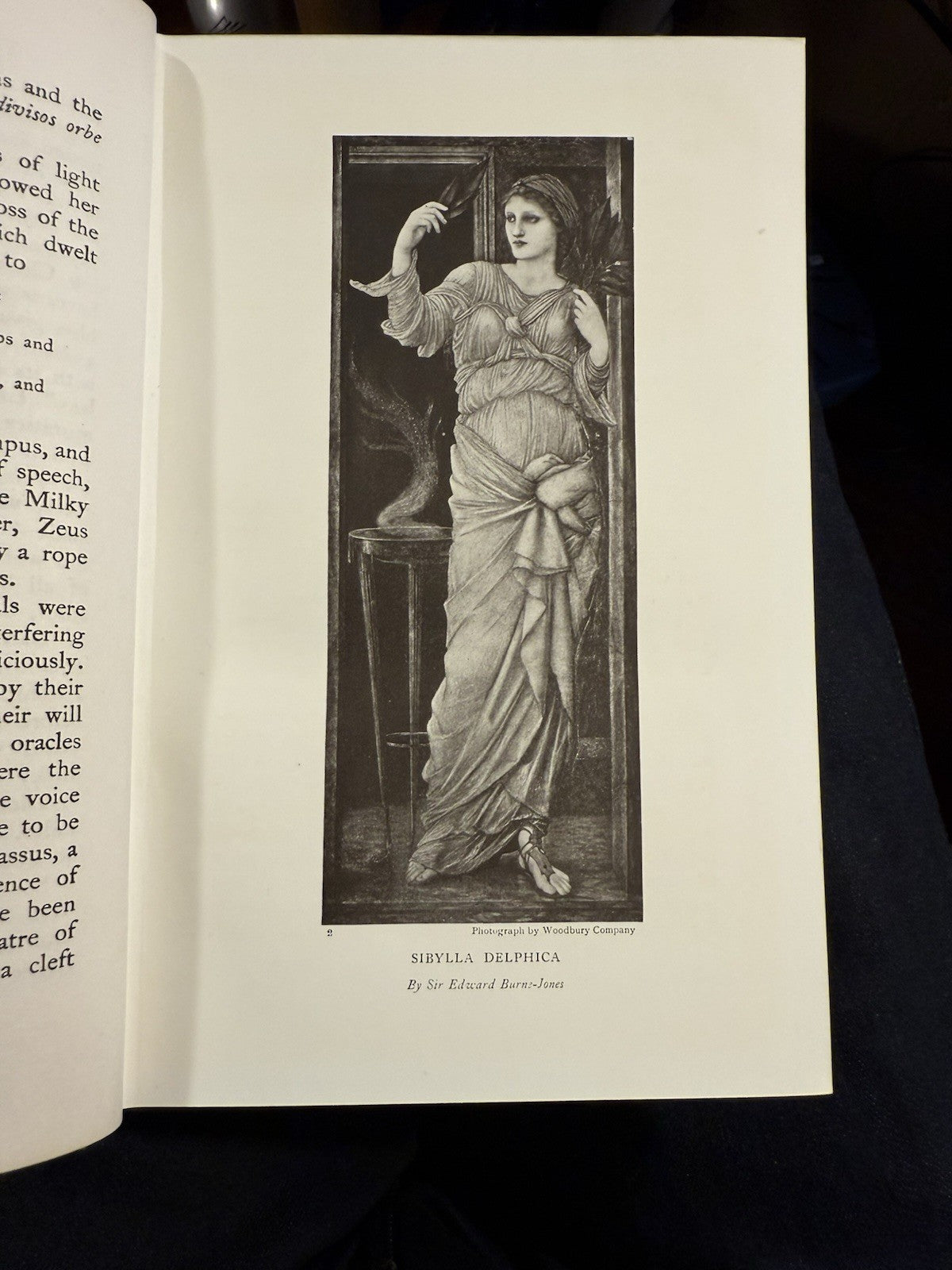 Published by Gresham Publishing Company, London, 1912. First Edition. Hardback, thick, 8vo, decorative art nouveau cloth binding in black and gilt. top edge gilt. Olive endpapers. pp xvi, 440. With 8 colour plates by Lord Leighton, plus 40 monochrome plates.