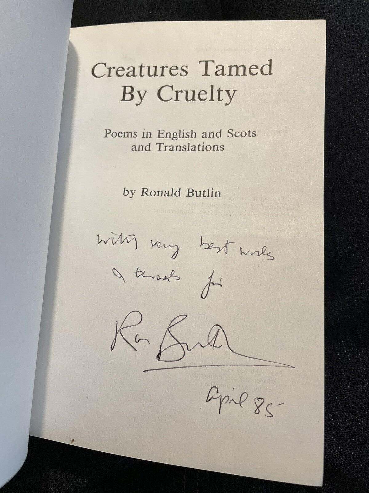 Creatures Tamed by Cruelty (SIGNED) Poetry by Ronald Butlin : 1st Edition 1979