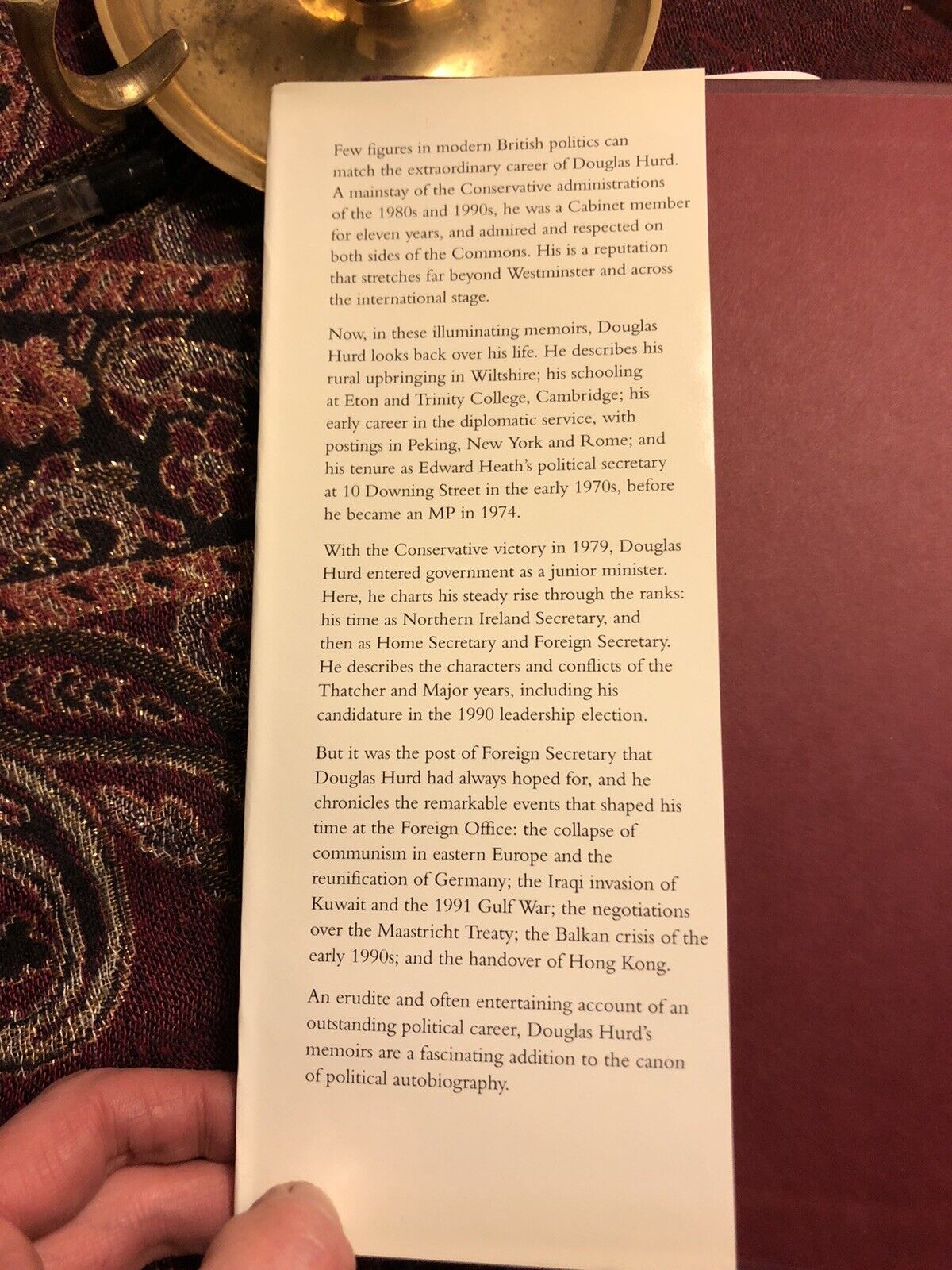 Douglas Hurd : Memoirs SIGNED 1st Edition 2003 : UK Conservative Party Politics
