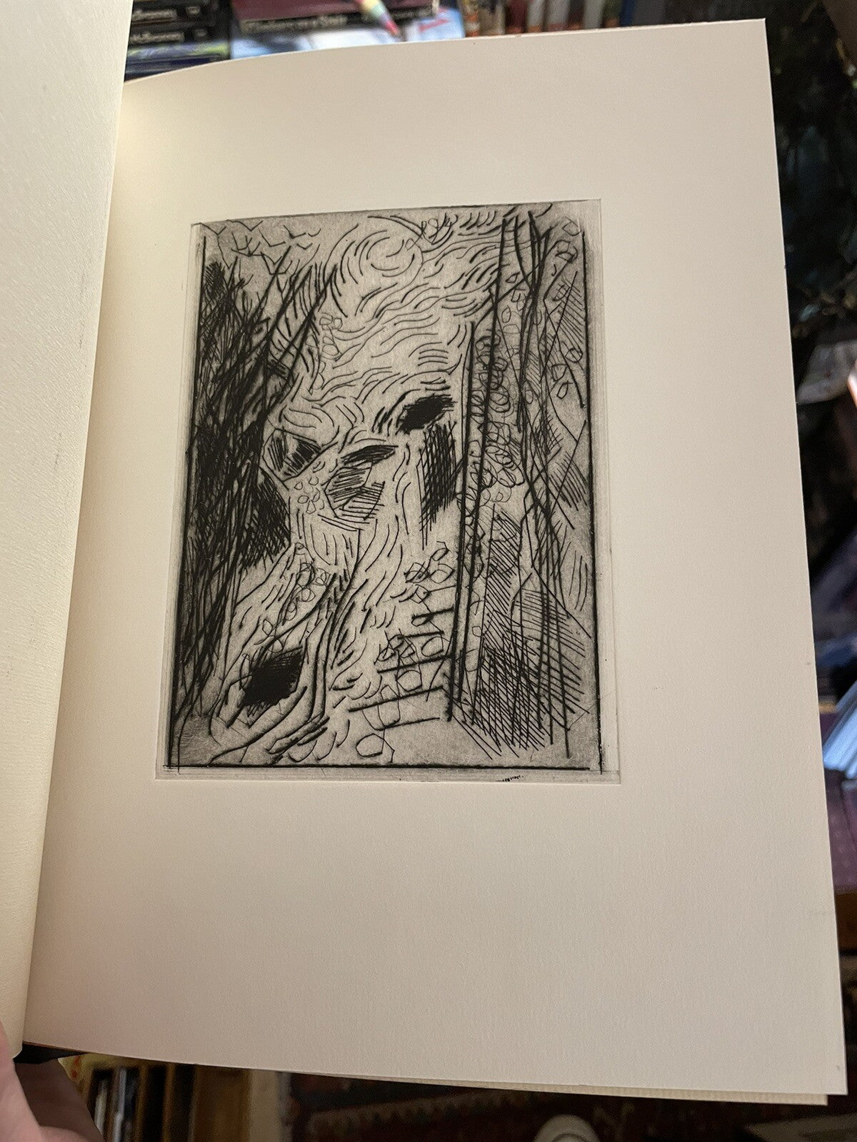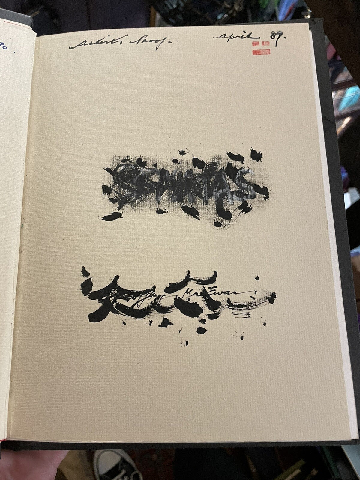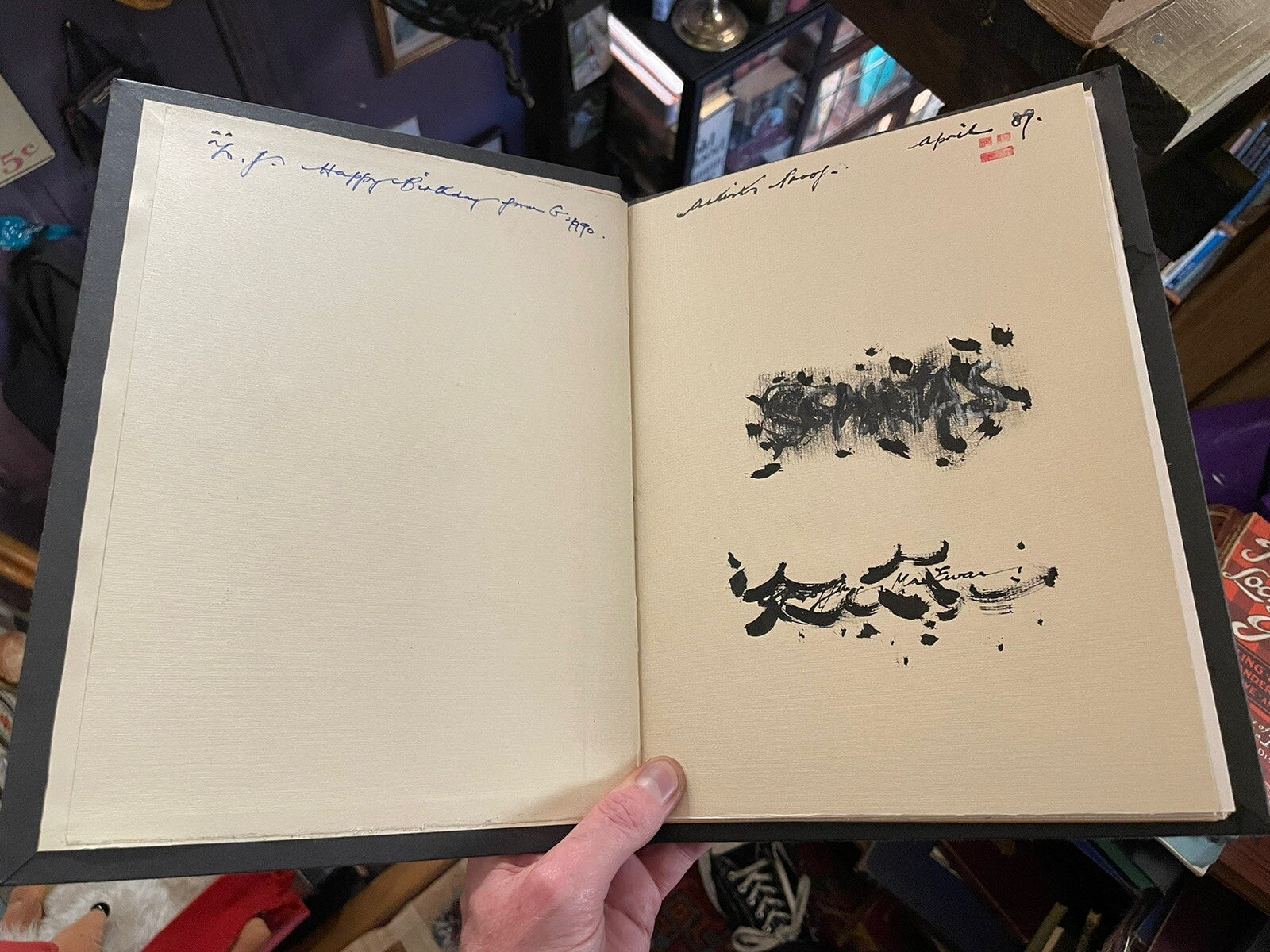 For sale we have a book of 'Artists'Proofs' by Scottish artist Geoffrey MacEwan entitled 'Sonatas'. Produced in 1989. Signed and dated by the artist Geoffrey MacEwan to the last page. He has also inscribed the front inside cover "To J, Happy Birthday from G, 1990". There are 13 drypoint etchings in this book each protected with a guarding sheet. Bound in hardcover. Size of book is 28.5 x 22.5cm.