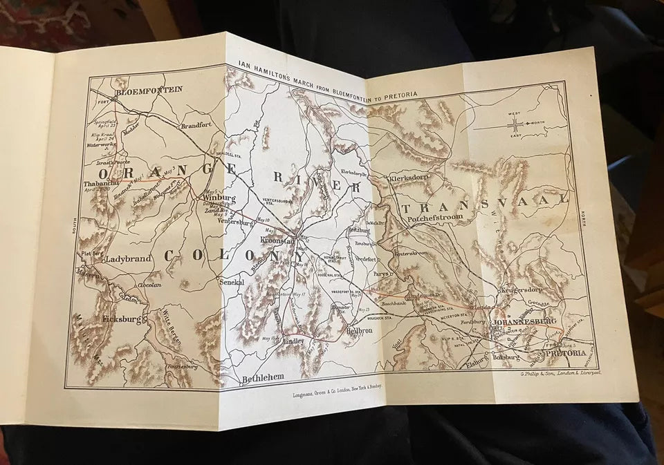 Published by Longman's Green and Co, 1900. Second Edition, published one month after the first also in 1900. Hardback, 8vo, cloth binding with gilt titles, black endpapers, 402 pages plus appendix. With portrait frontispiece, 9 maps in the text and large folding coloured map