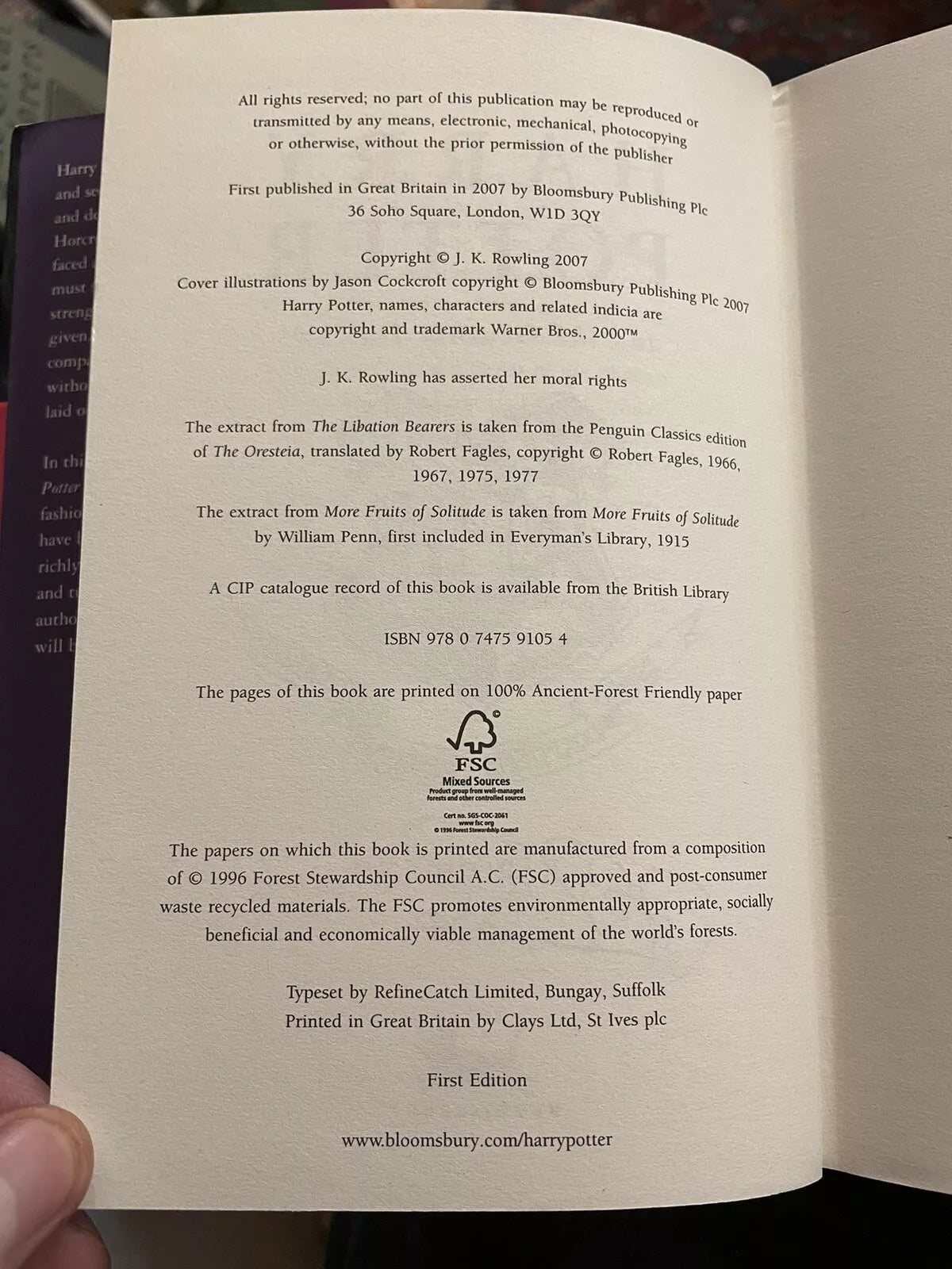 JK Rowling : Harry Potter and the Deathly Hallows : SIGNED 1st/1st