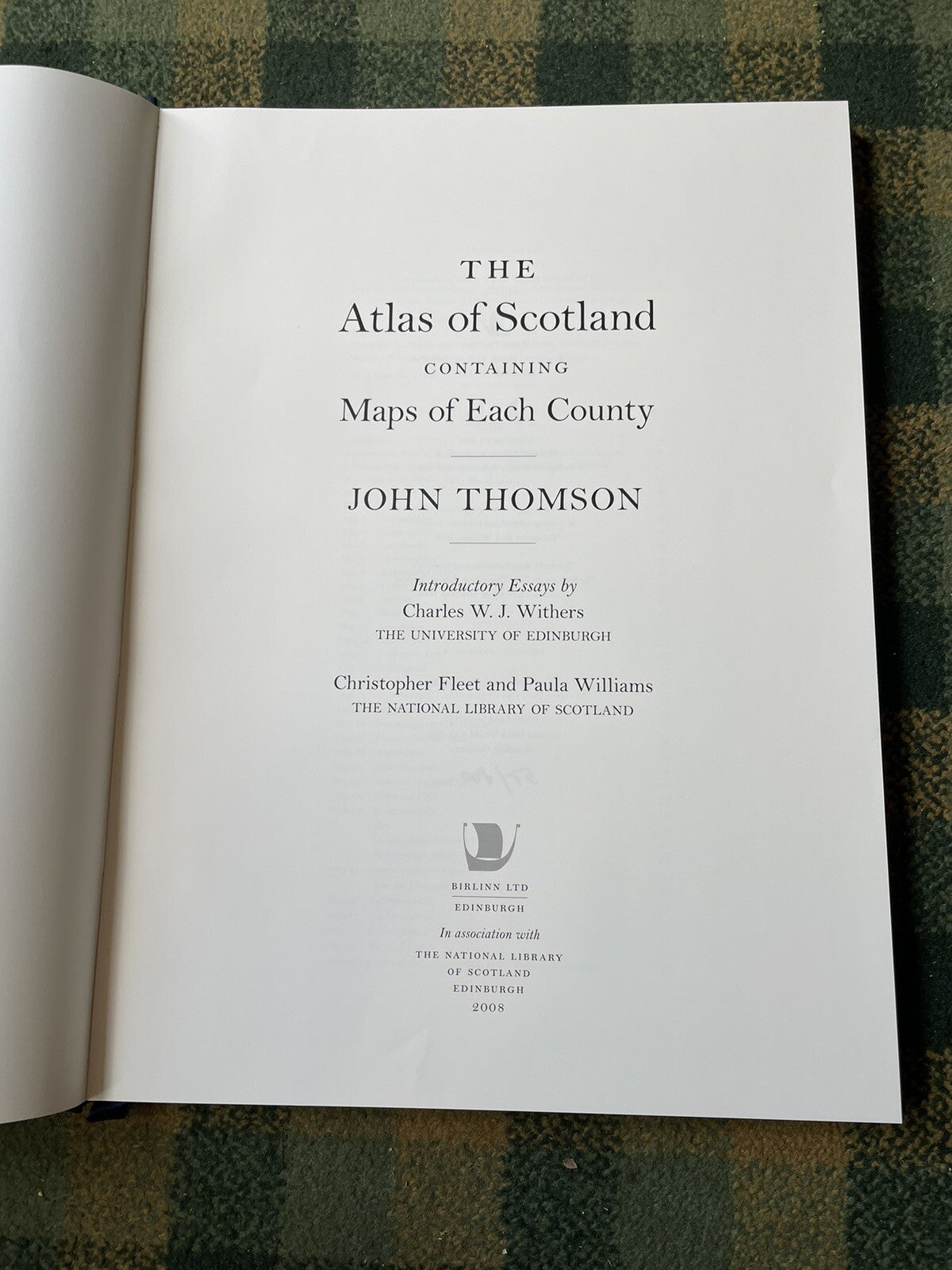 Published by Berlinn Limited, 2008. Limited Edition of 800 copies of which this is copy 57. Large heavy book that measures 49.5 x 36.5 cm. Book comes with a plain blue cloth slipcase as issued. Plain endpapers. With 23 + 8 pages of introductory text followed by 29 double-page county maps in colour.
