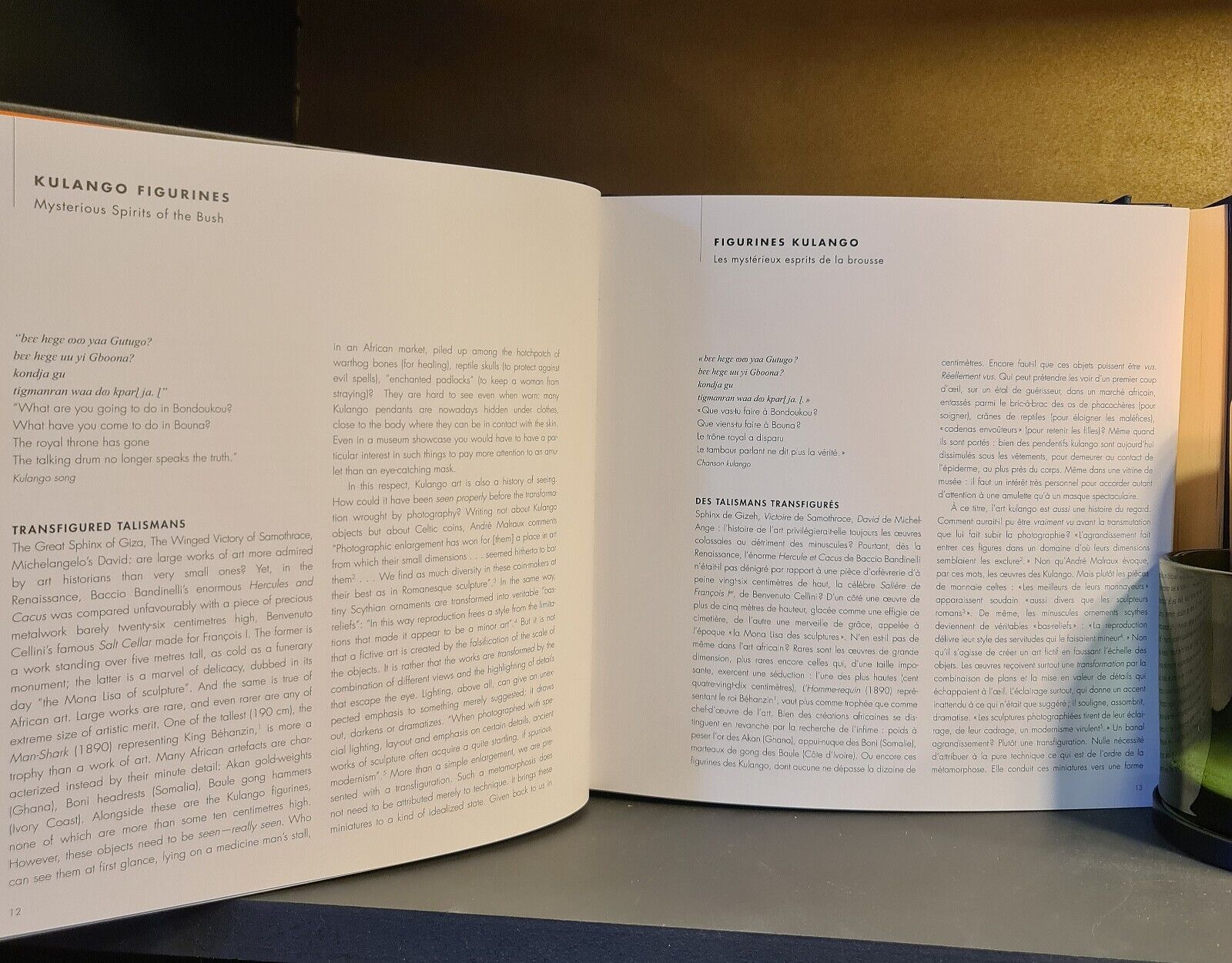 Pierluigi Peroni presents over 100 small African anthropomorphic bronzes made by the Kulango people of the Ivory Coast. Selected from her personal collection to represent the diversity of the artform, they include pendants, amulets and ceremonial objects, all under 10cm high. Detailed text by Alain-Michel Boyer offers analysis of the objects and their cultural significance. Text in English and French.
