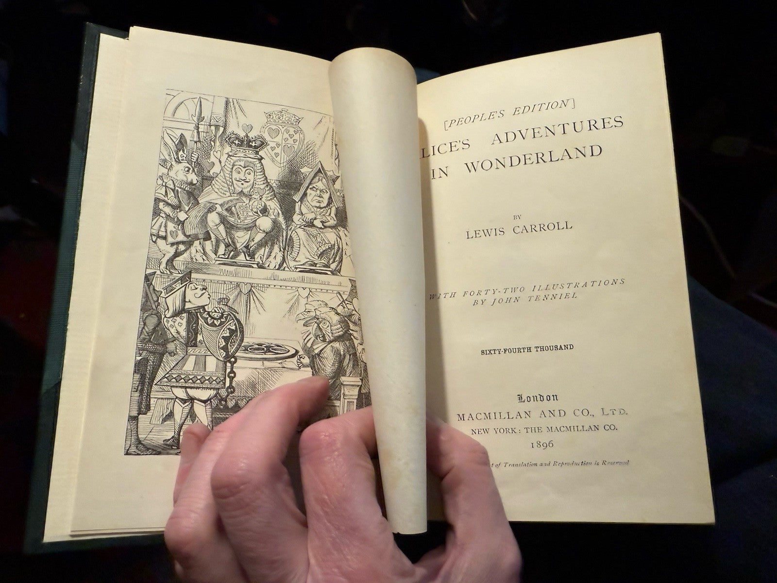 London, Macmillan and Co. Limited, 1896 (64th thousand.) & (44th thousand.). “The People’s Edition.” Two Volumes in slipcase. Later halfbound in dark green morocco leather fine bindings, with green cloth to boards.. Each book is approx 7.5 x 5 inches. With Forty-Two and Fifty Illustrations by John Tenniel.