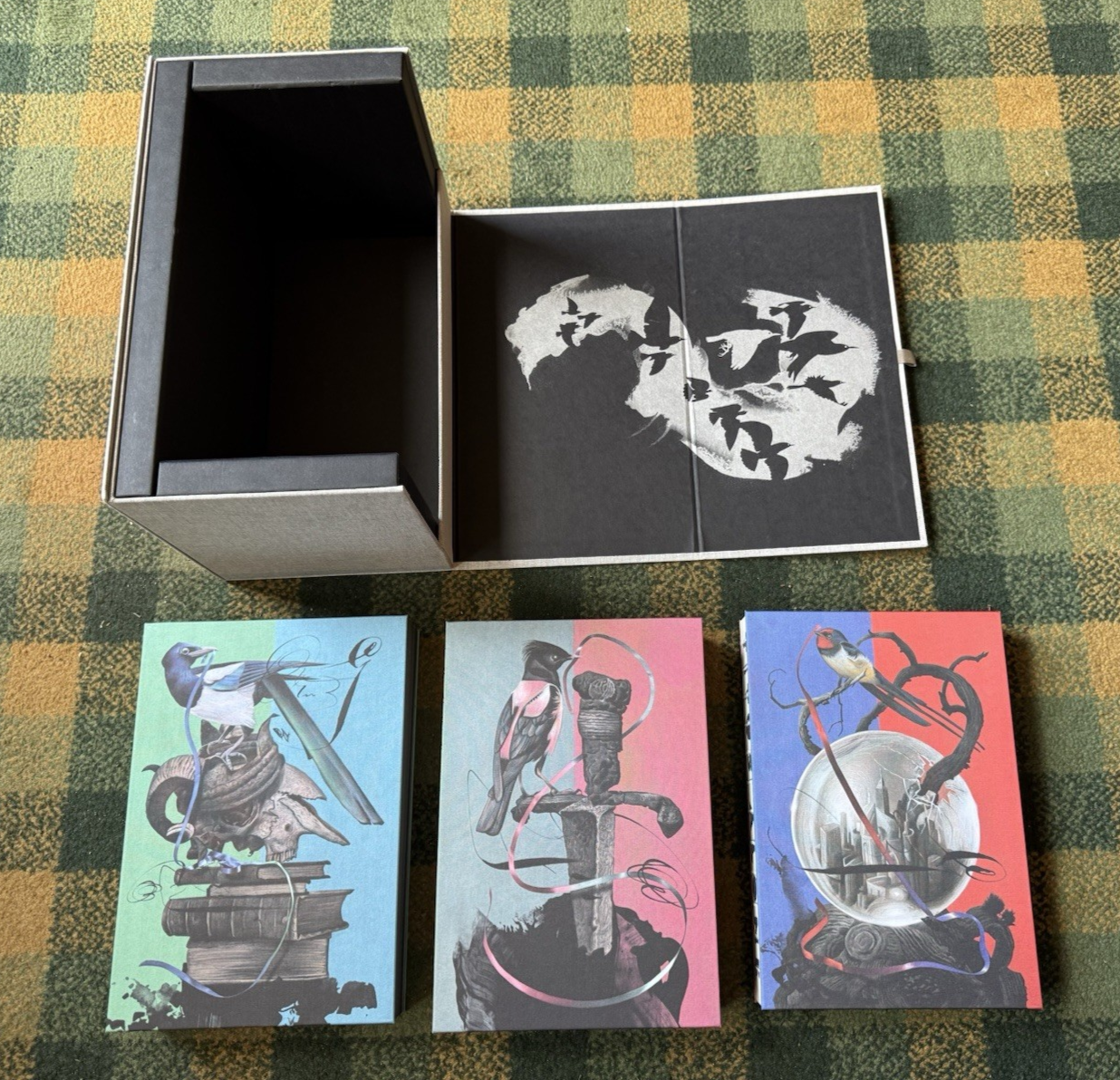 Published by Folio Society, London, 2022. Limited to 750 copies of which this is number 700. Signed by Dave McKean and Neil Gaiman. Three hardback books in box which closes magnetically. Box measures 30 cm x 18 cm x 17 cm.