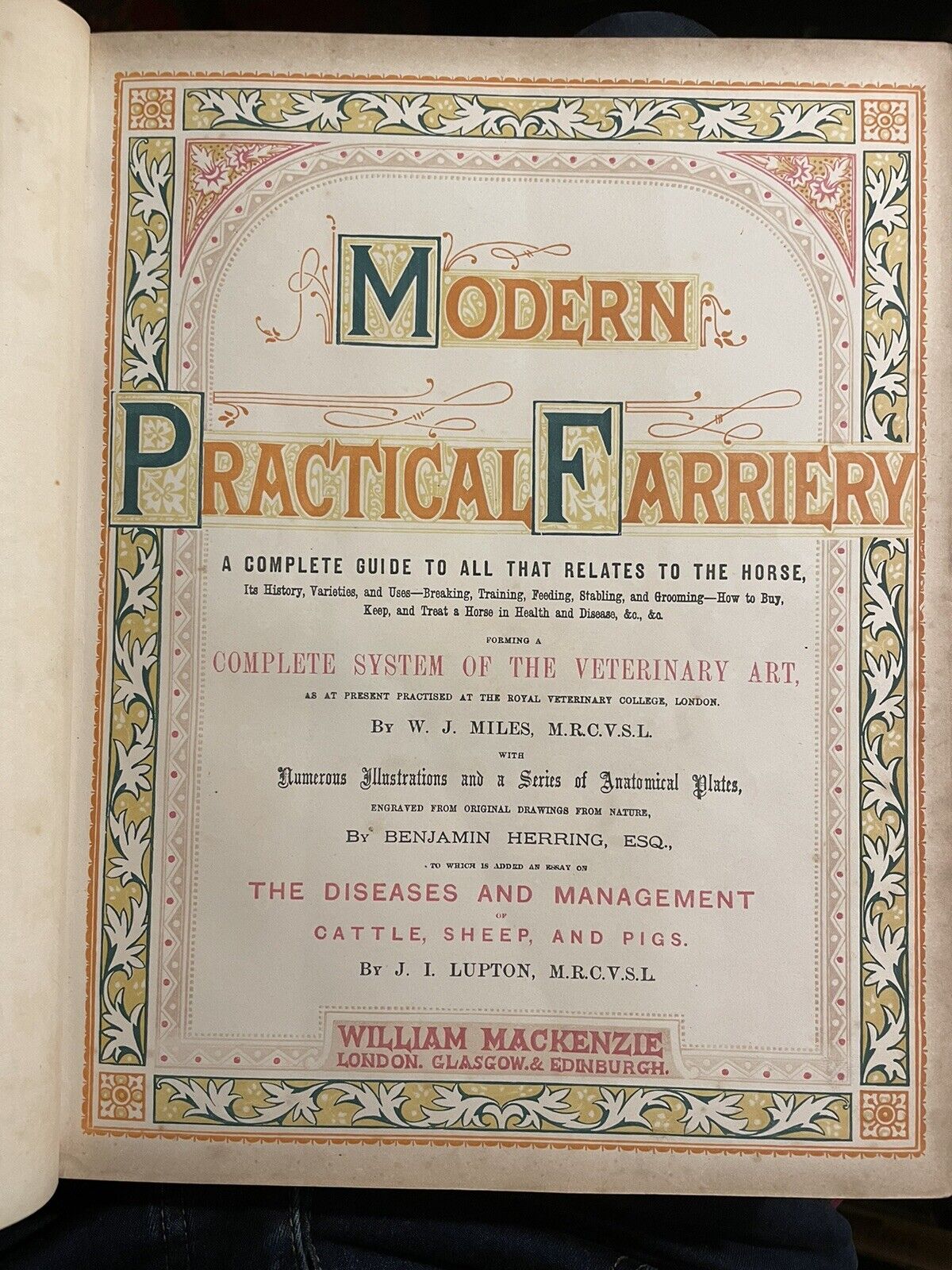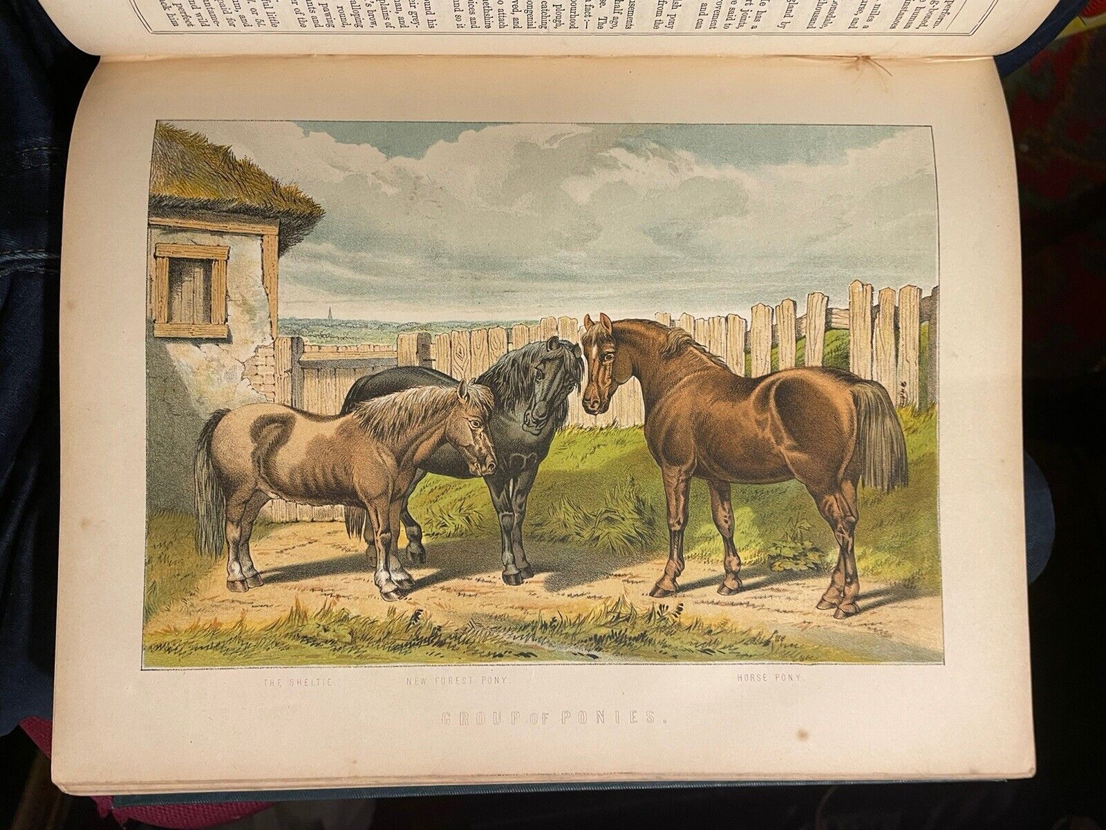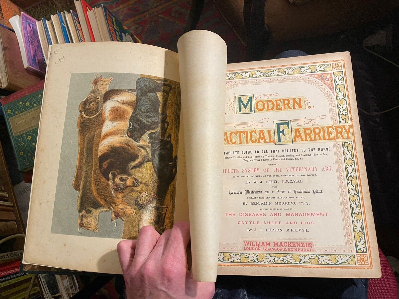 Published by William Mackenzie, London, undated, c1885. Large 4to, recently rebound in moire silk bookcloth, marble endpapers, vii, 536pp, 96pp. Lovely colour title page as well as a letterpress title page. With 14 colour plates and 14 anatomical plates. 5 sheep/pig plates.