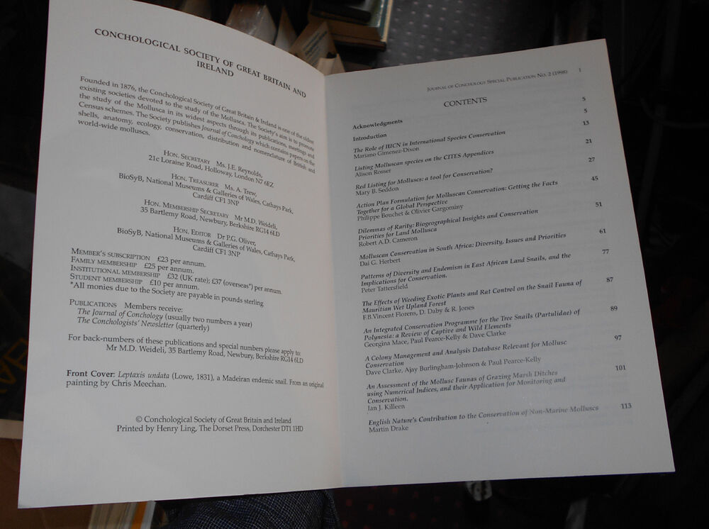 Seddon, M. B., Killeen, I. J., Bouchet, P. & Bogan, A. E.: Developing a Strategy for Molluscan Conservation in the Next Century. Extended Abstracts of Poster Presentations Light,