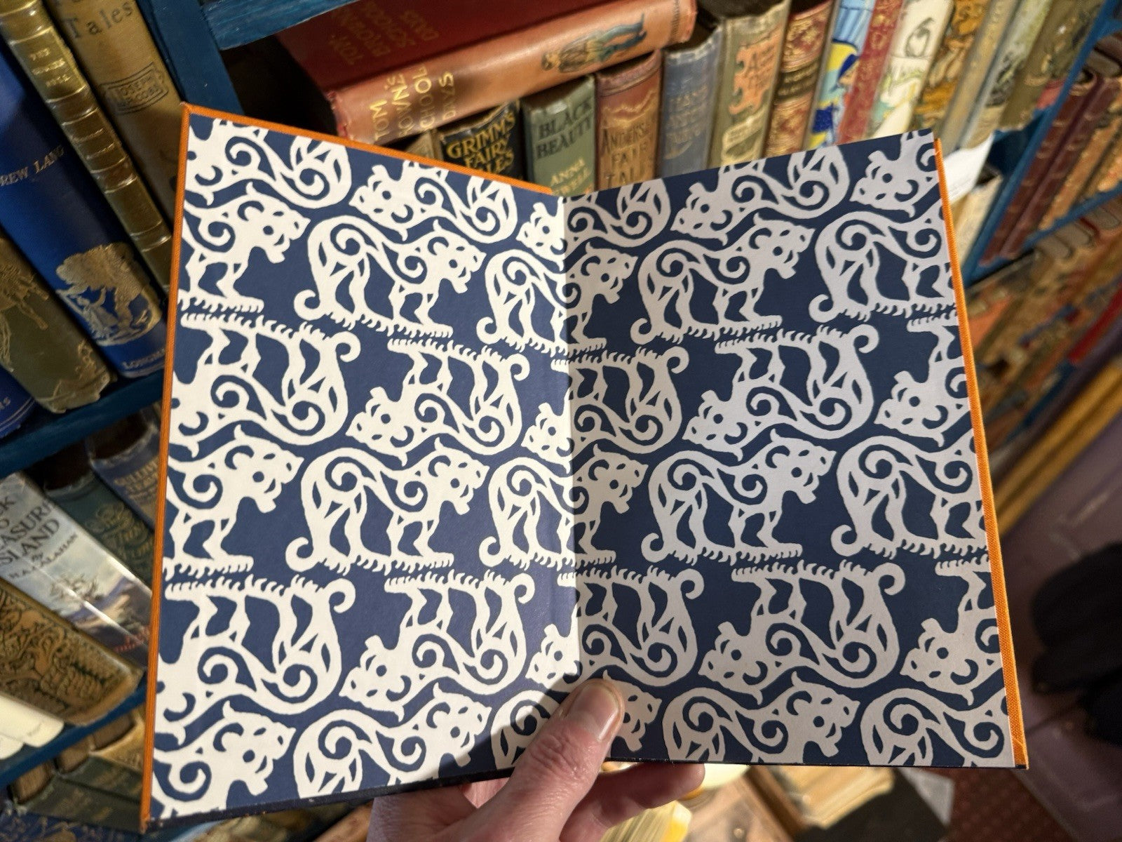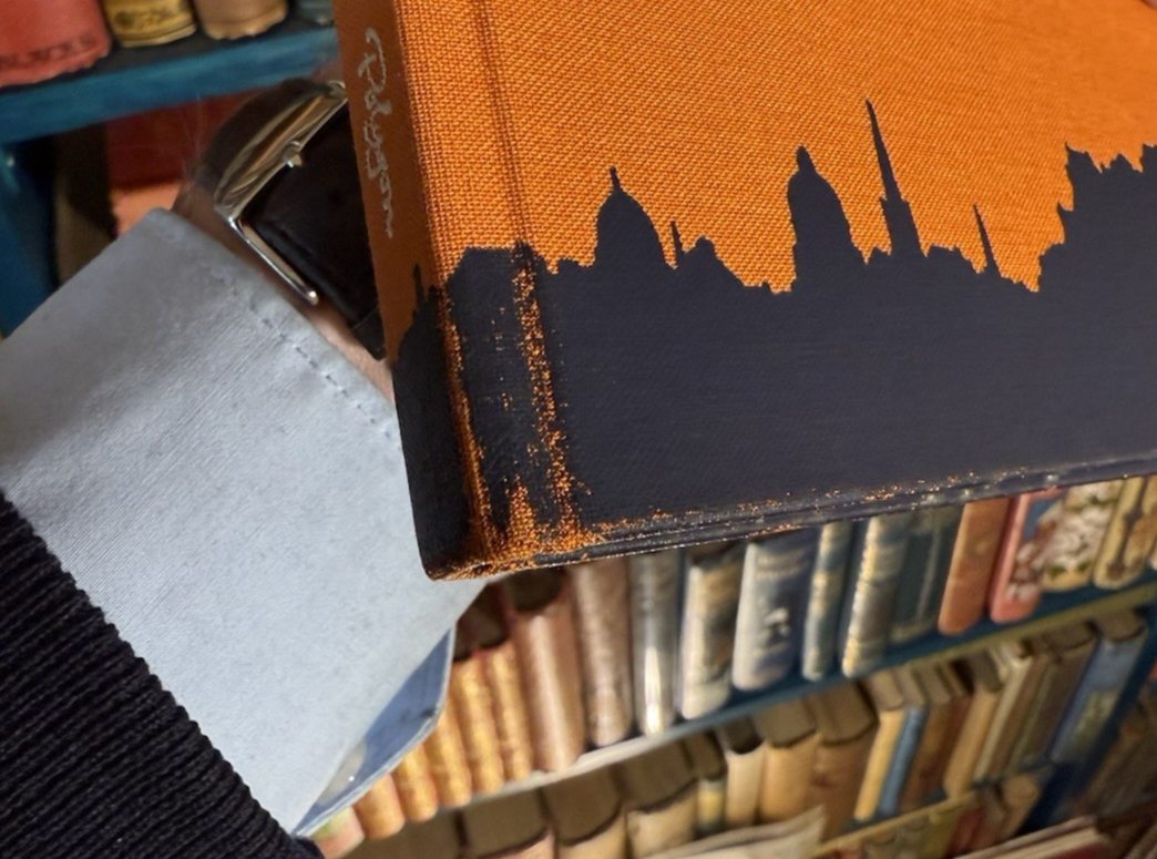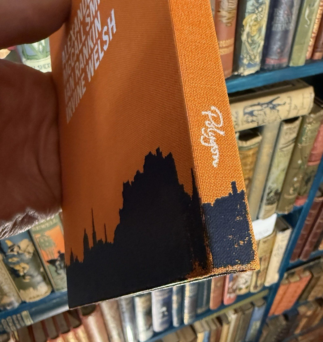 Publisher's original orange cloth (with Edinburgh skyline silhouette) in slip-case. Blue patterened endpapers, pp 109, [ii]
