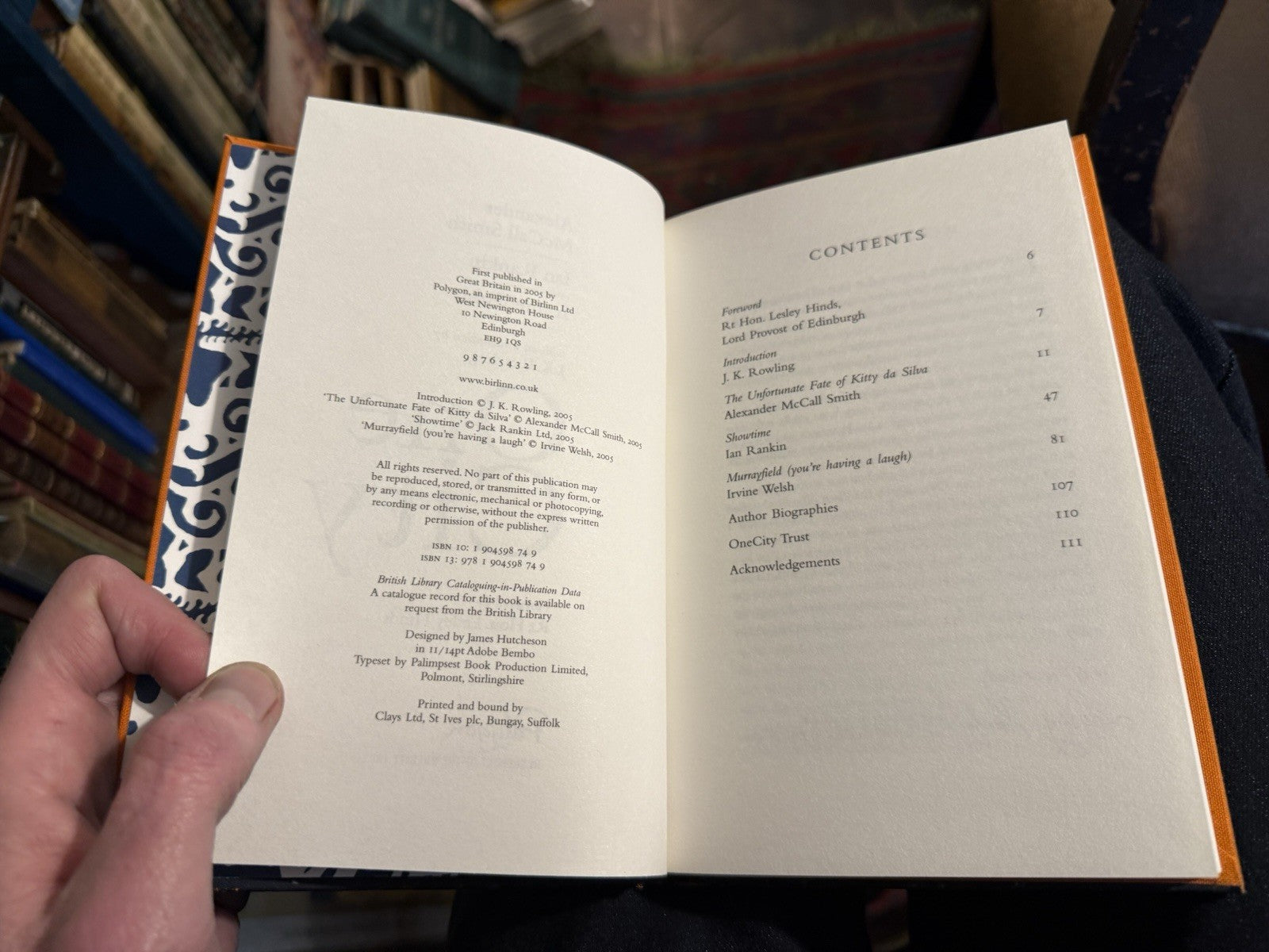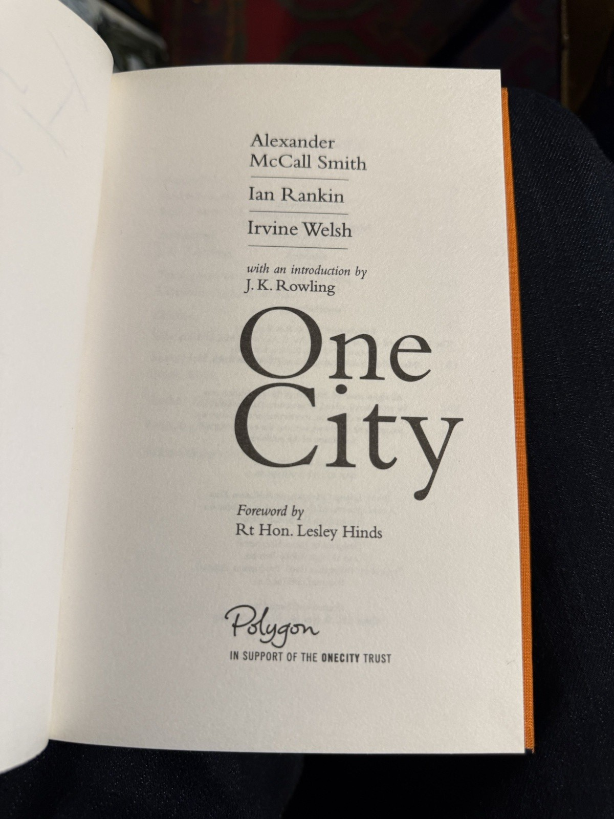 Published by Polygon in support of the OneCity Trust, 2005. Limited Edition. This is number 24 of 150 numbered copies signed by J.K. Rowling, Ian Rankin, Alexander McCall Smith and Irvine Welsh to the half-title page.